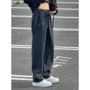 运动男裤 水洗灰做旧重磅卫裤 子休闲长裤 慵懒松弛感裤 男垂坠感男式