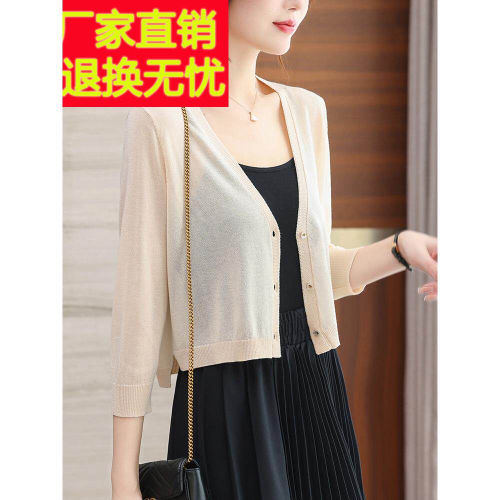 夏 配吊带裙子小披肩冰丝外搭罩衫 中国濮院市桑蚕丝针织开衫 女薄款
