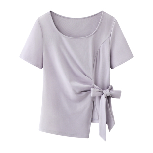 短袖 设计感打底衫 T恤开叉系带收腰上衣女 不规则时尚 艾格2026新款