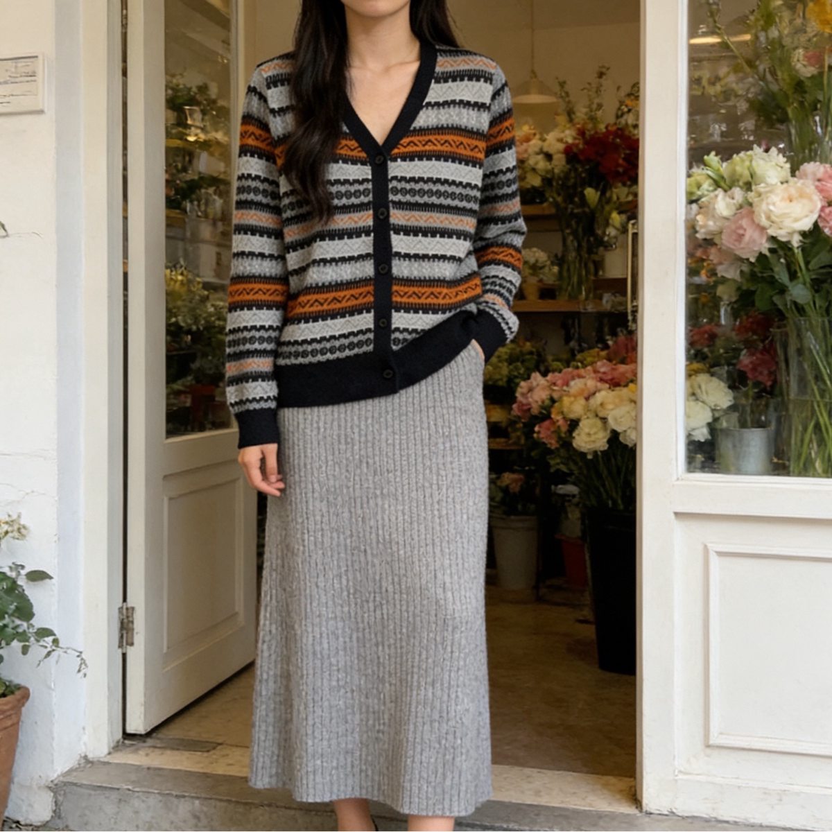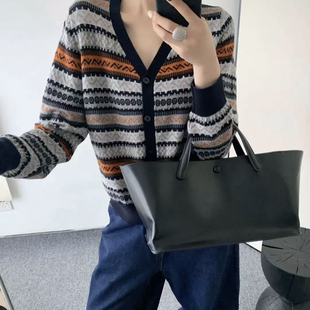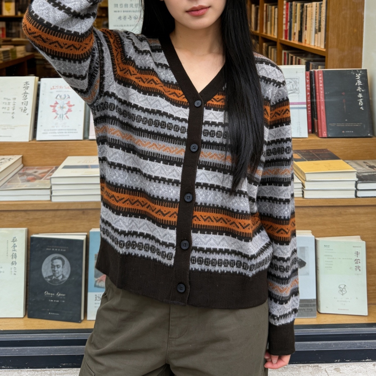 毛针织开衫 羊毛V领复古费尔岛宽松长袖 H2666 韩版 2026春秋新款