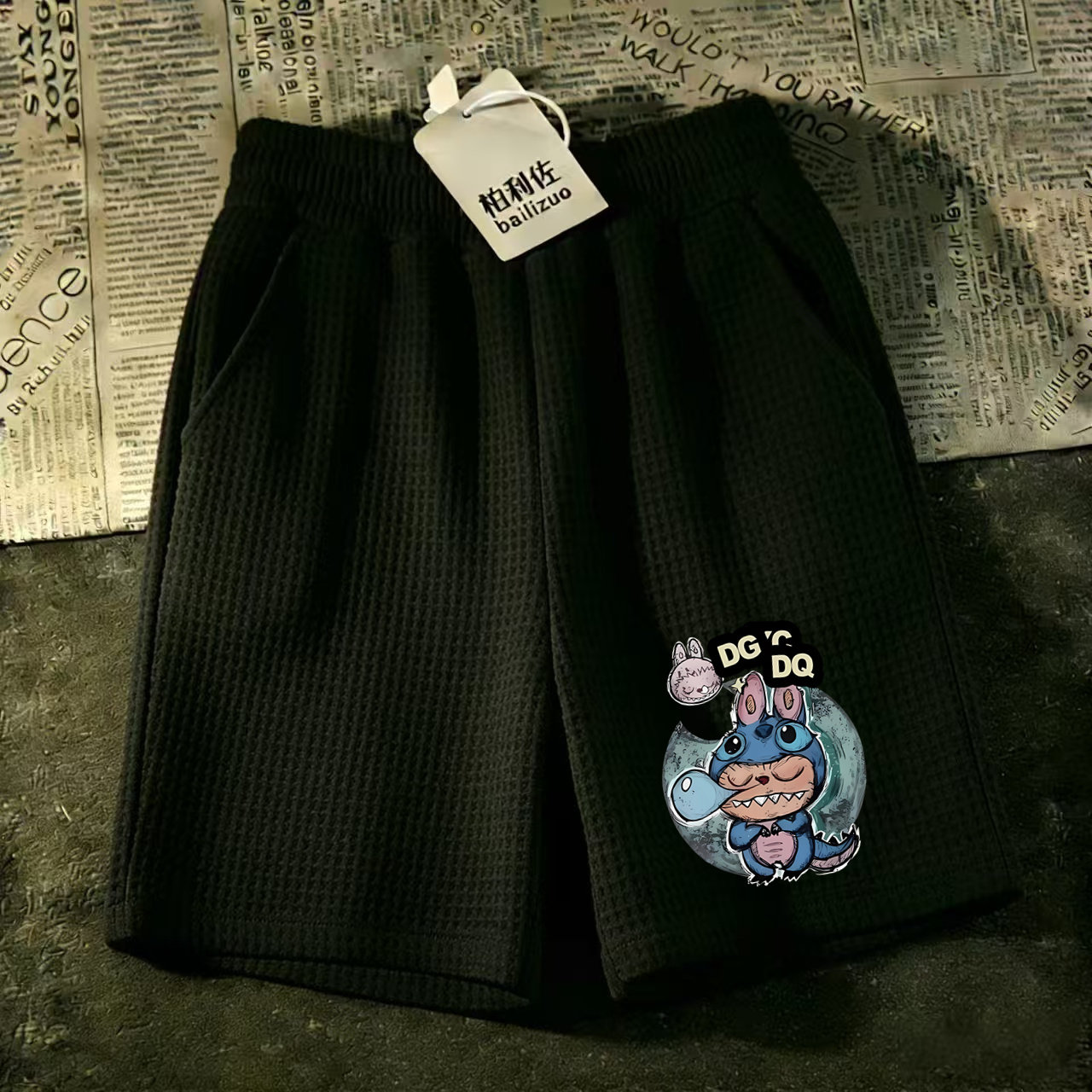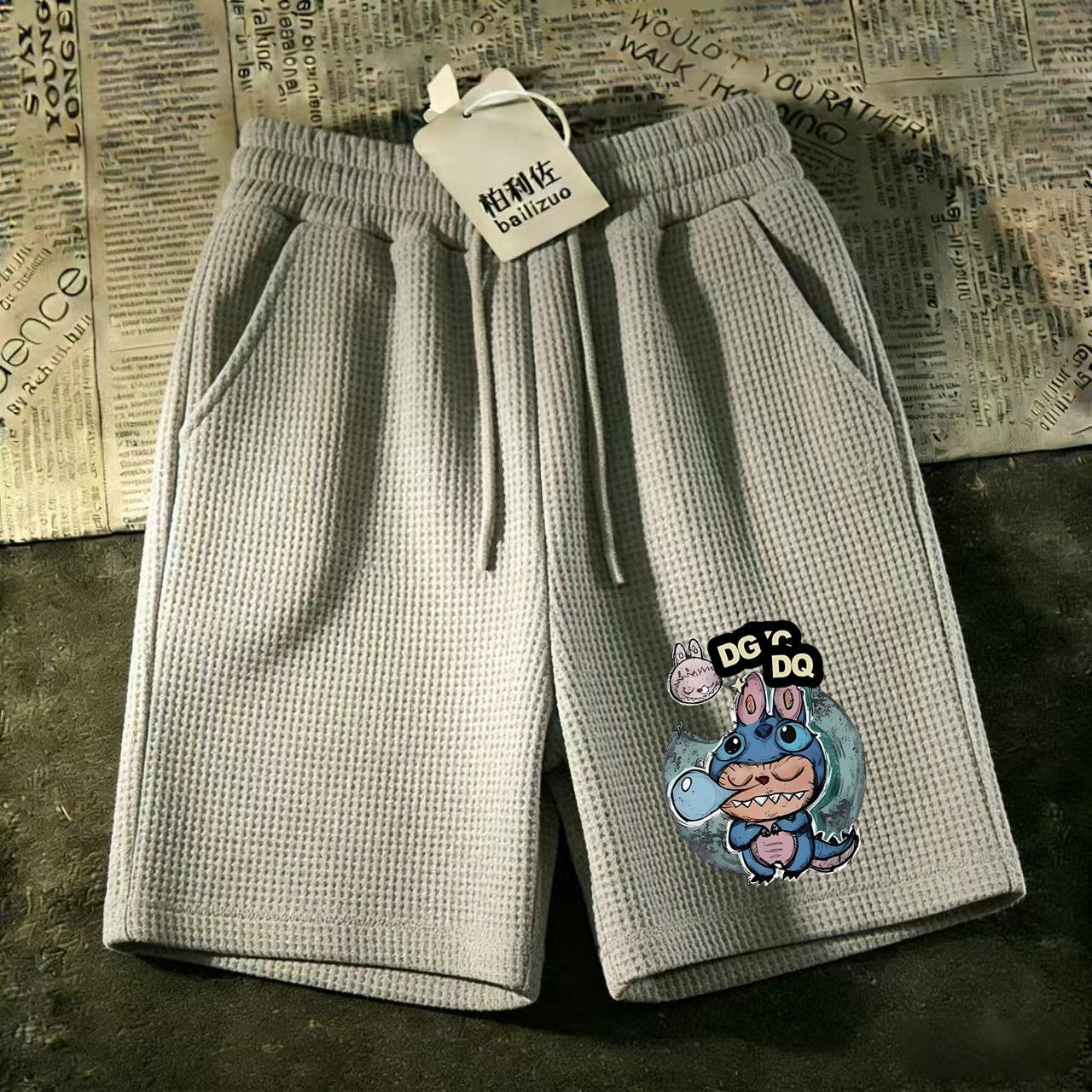 休闲运动中裤 马裤 短裤 沙滩男宽松休华夫格潮流裤 衩 夏季 大裤 五分裤