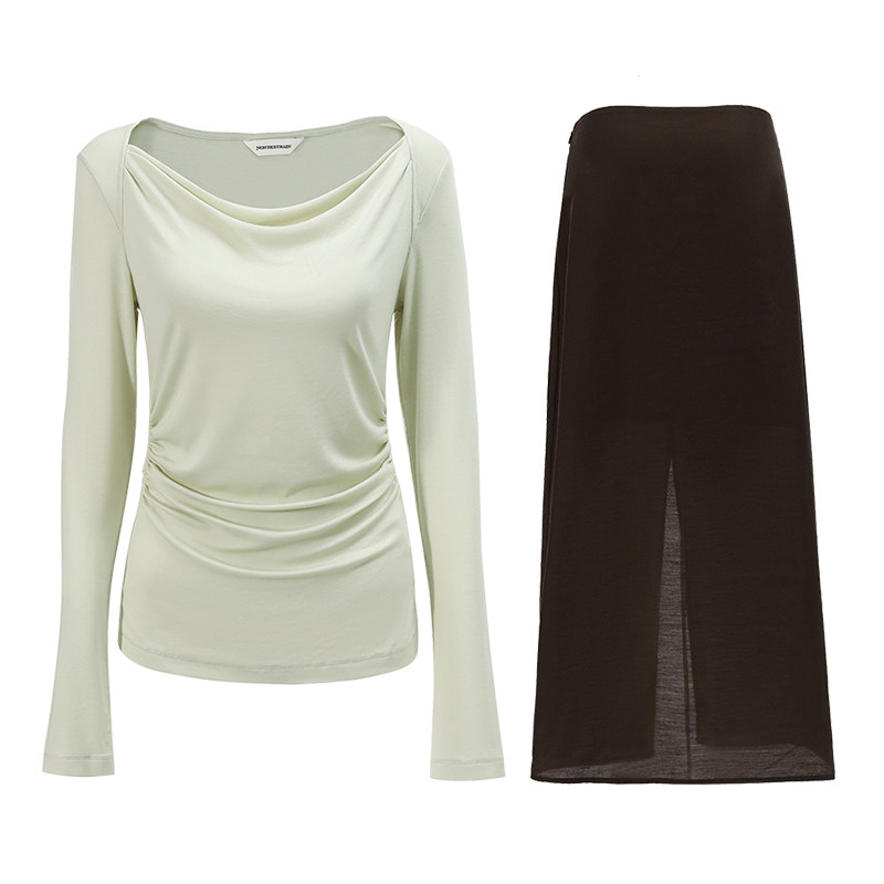 RESTRAIN荡领T恤上衣 NON 衣橱直播间 咖棕色半身裙 所有女生