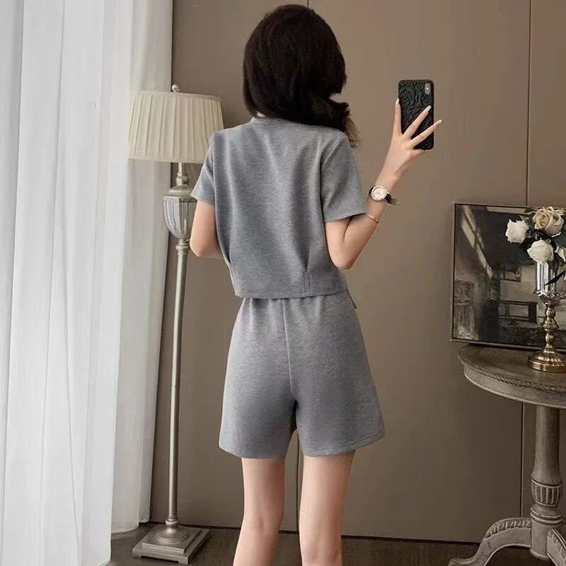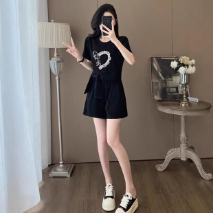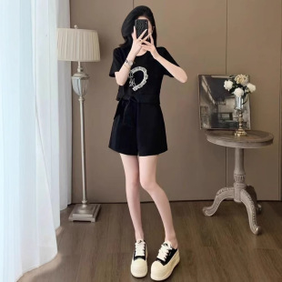短裤 减龄短袖 两件套洋气 女夏小个子显高时尚 网红炸街运动休闲套装