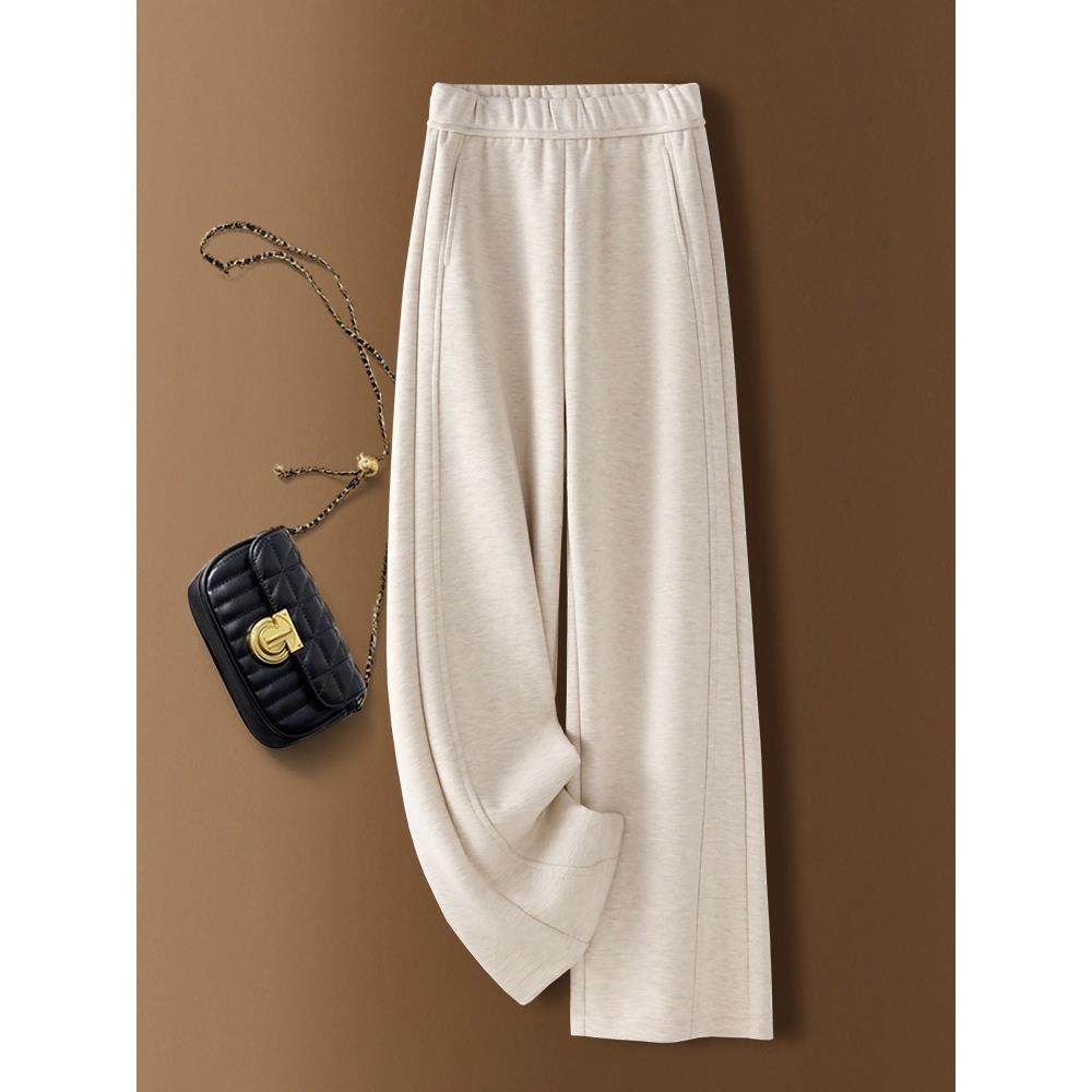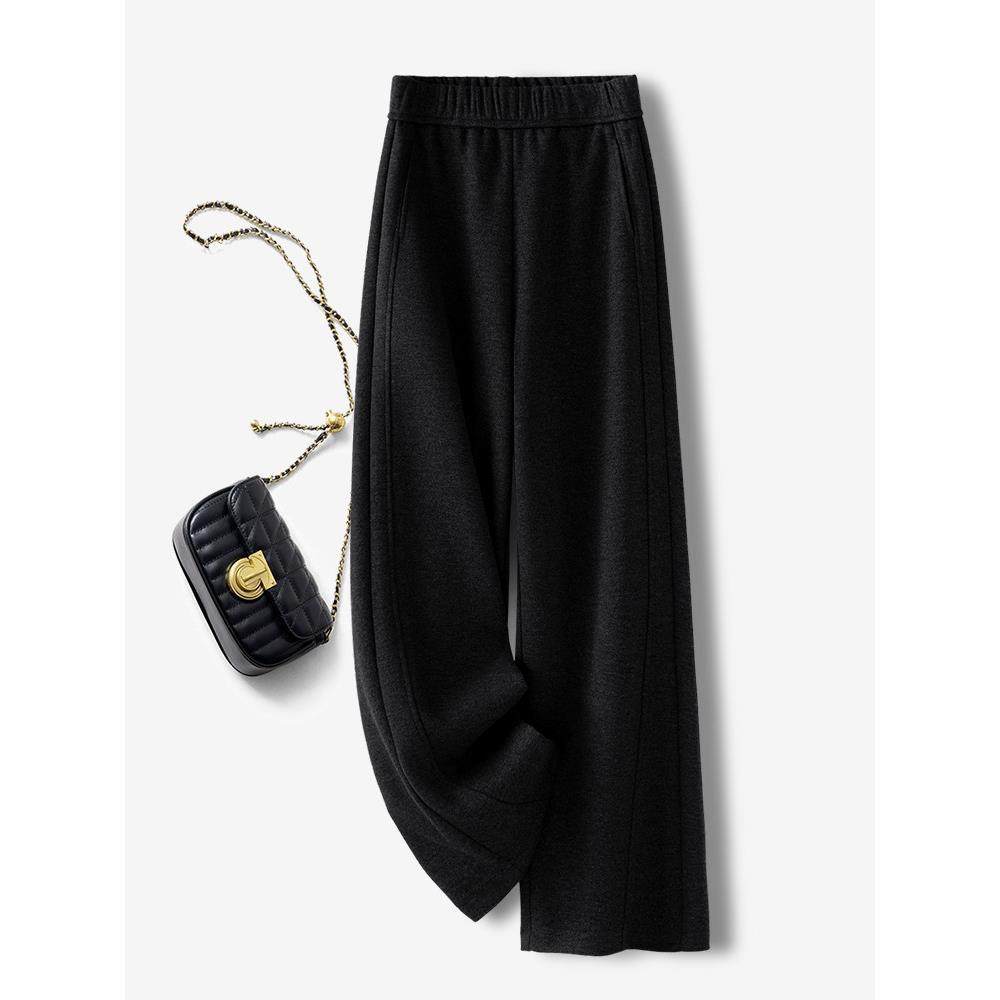子 羊毛呢加绒小个子九分直筒裤 轻奢灰色羊绒阔腿裤 女2025秋冬新款