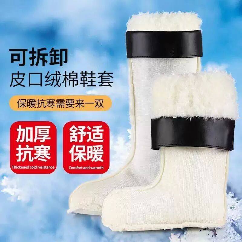 水靴一体绒厚底胶鞋 加厚保暖防水棉雨靴男冬季 女加绒防滑水鞋 雨鞋