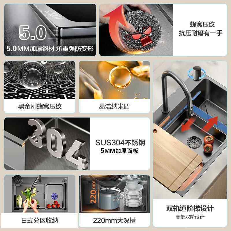 厨房洗菜盆蜂窝压纹水槽大单槽加厚sus304不锈钢家用台下盆洗碗槽
