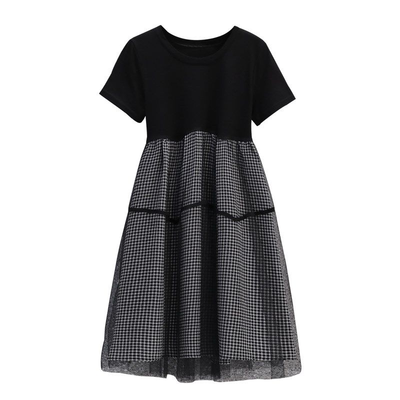 连衣裙夏季 孕妇装 拼接格子短袖 韩版 假两件裙子宽松显瘦孕妇裙 夏装