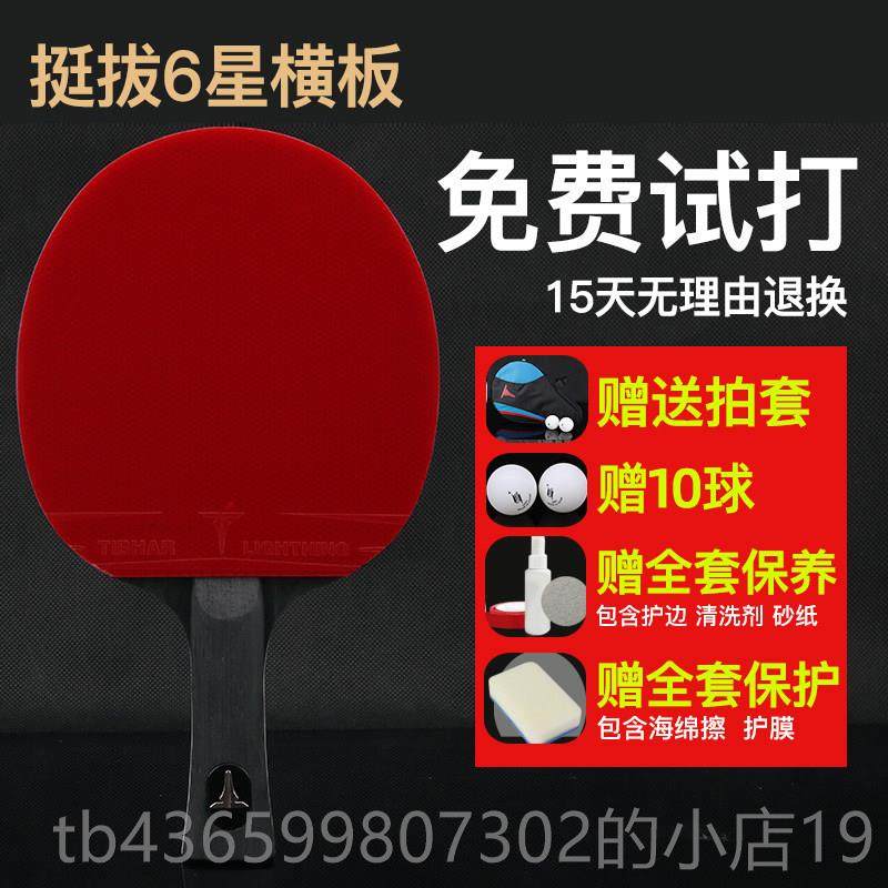 正品 tib乓har德乓国挺拔乒球拍单拍专业级六星直拍横6星p拍pq兵球