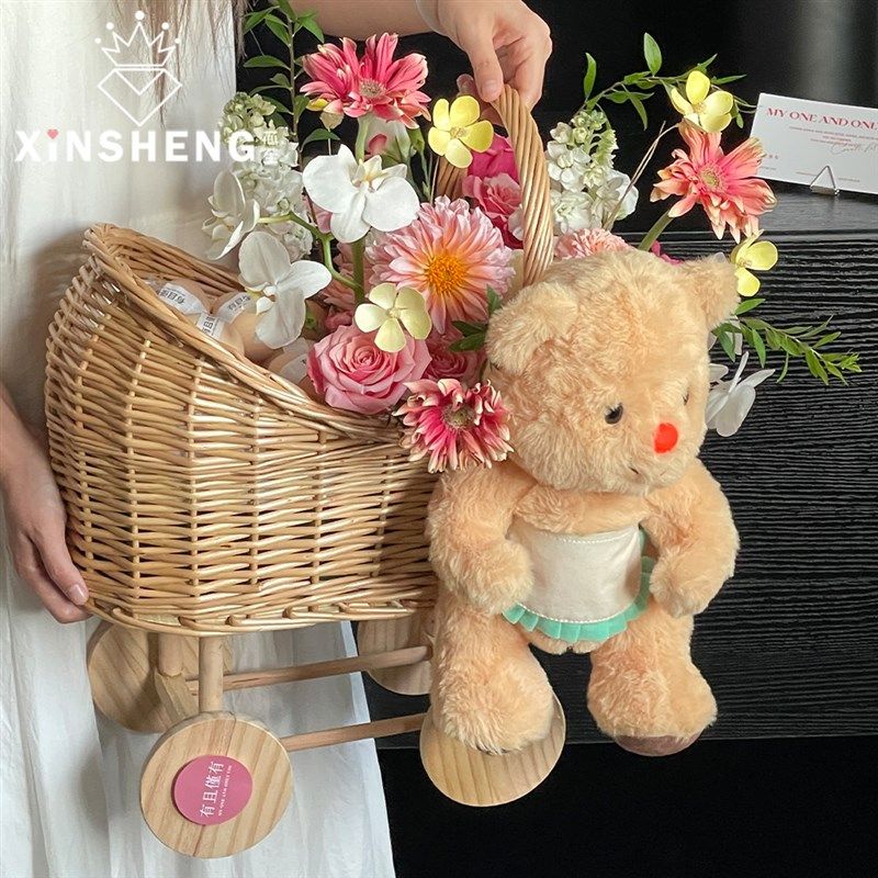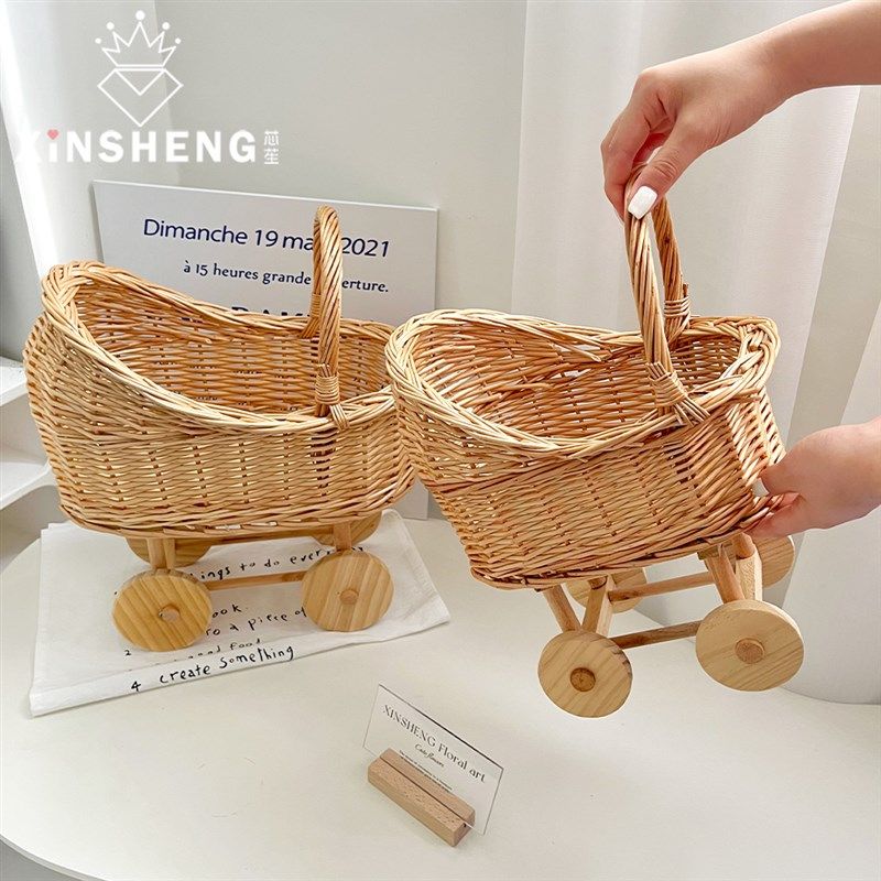 芯苼 饰摆件创意可爱水果篮资材手工diy 手提推车鲜花篮插花花艺装