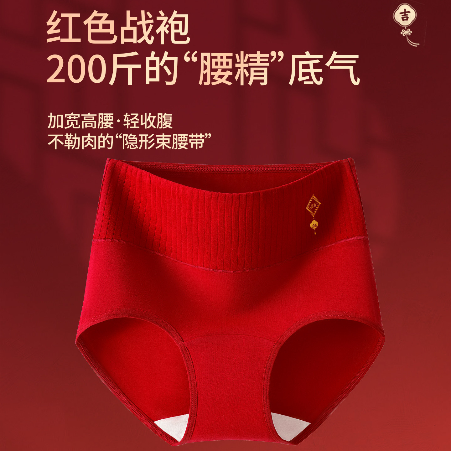 胖mm三角短裤 高腰收腹本命年红色内裤 女士纯棉抗菌全棉属马年大码