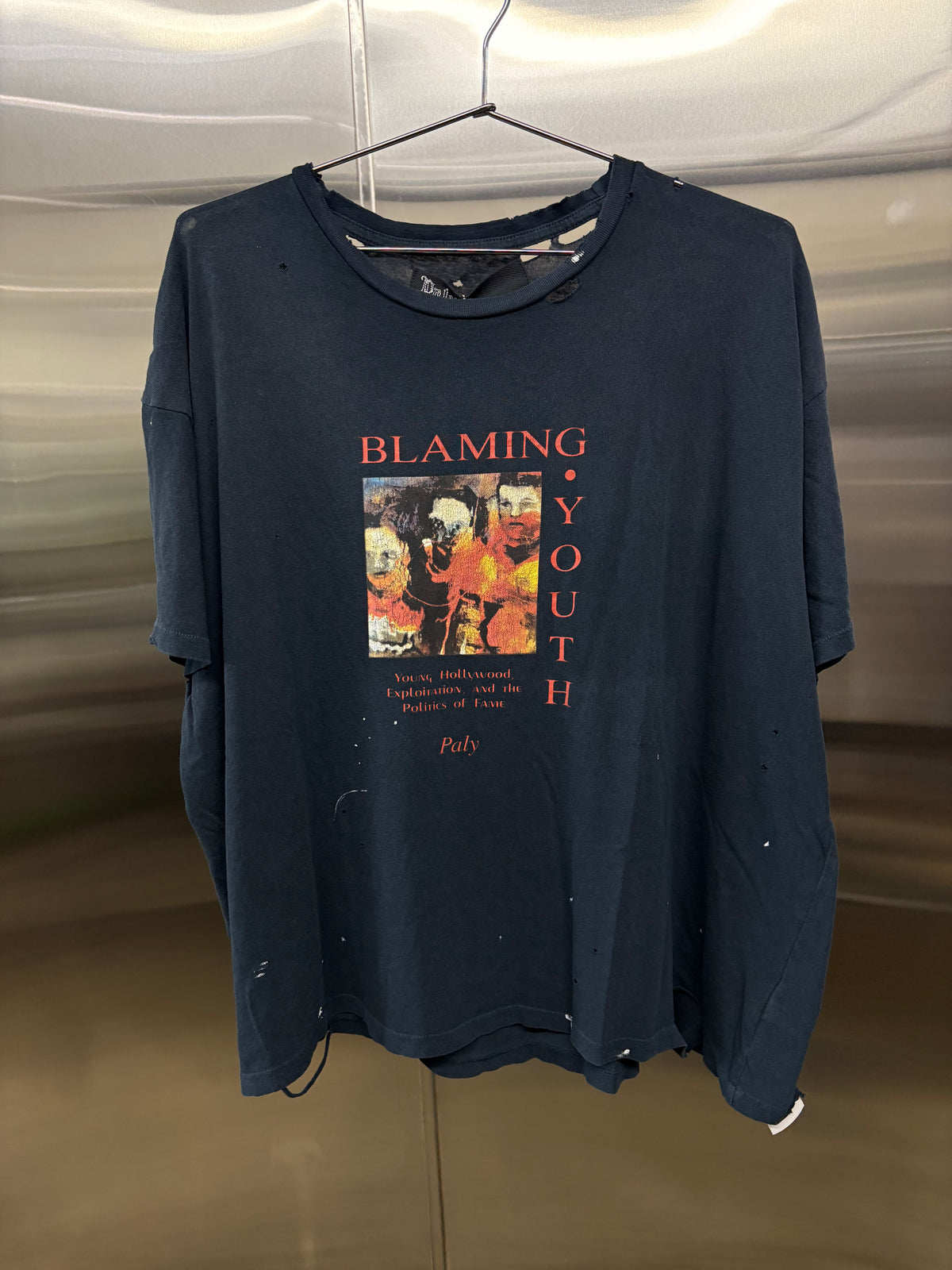 休闲纯棉T恤tee 美式 Play Hollywood小众设计蜡染水洗做旧破坏短袖