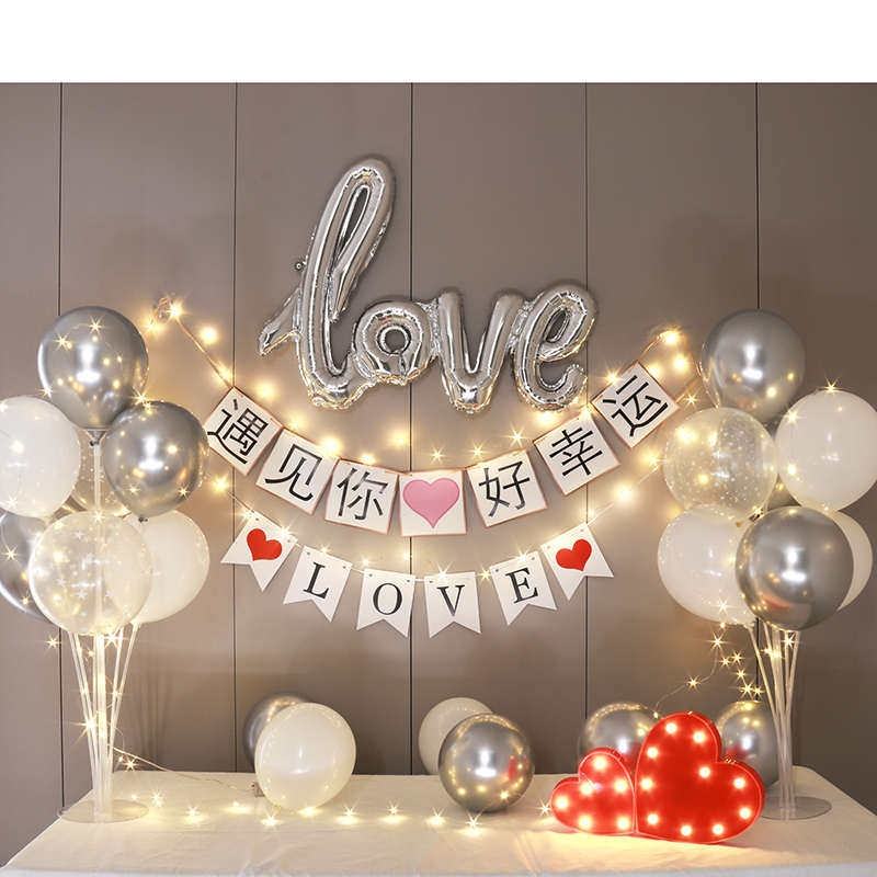 情人节520表白求婚惊喜场景室内布置餐桌面电视机柜七夕礼物布置