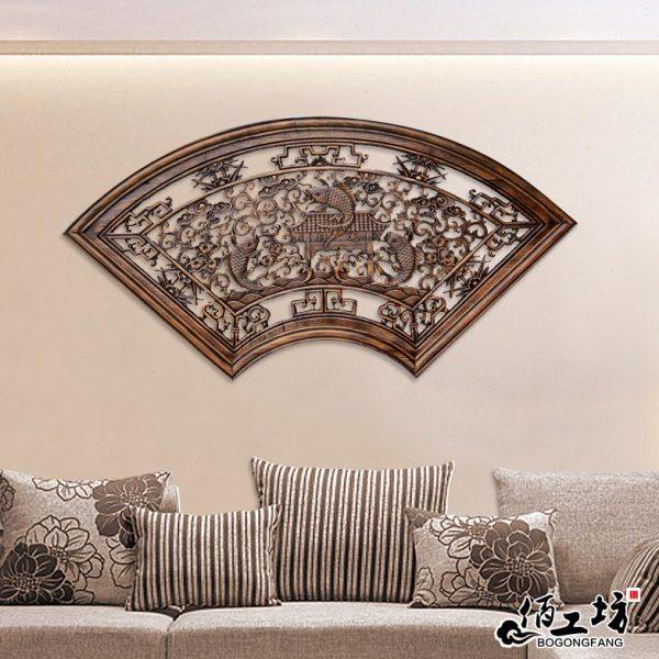 饰品挂件香樟实木创意家居扇形多款 东阳木雕刻 壁饰墙饰墙上面装