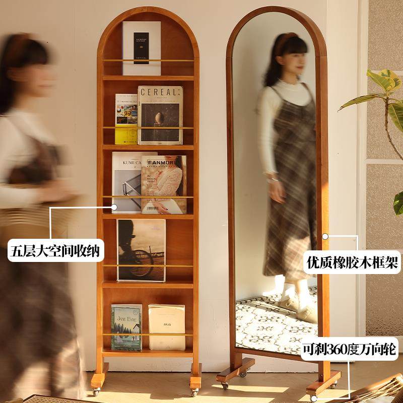 ?法移中古可镜动全身落地家用书架WXF式 杂志一体带轮旋转穿衣镜子