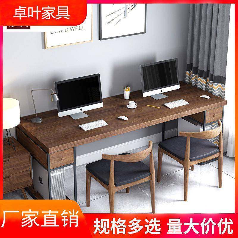 台现代约实木书桌家用双人式 电脑书桌桌带抽屉办简公桌桌子学生学