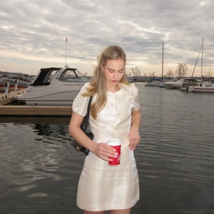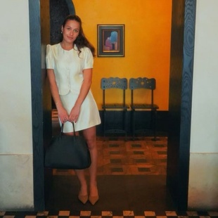 斜纹光泽 圆领 泡泡短袖 套裙 Mika 套装 通勤