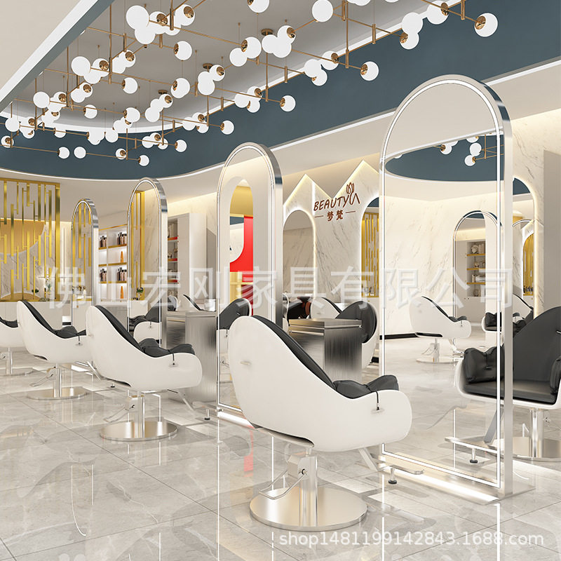 新款 美发店镜台发廊镜子理发店落地剪发网红双面带灯靠墙烫染