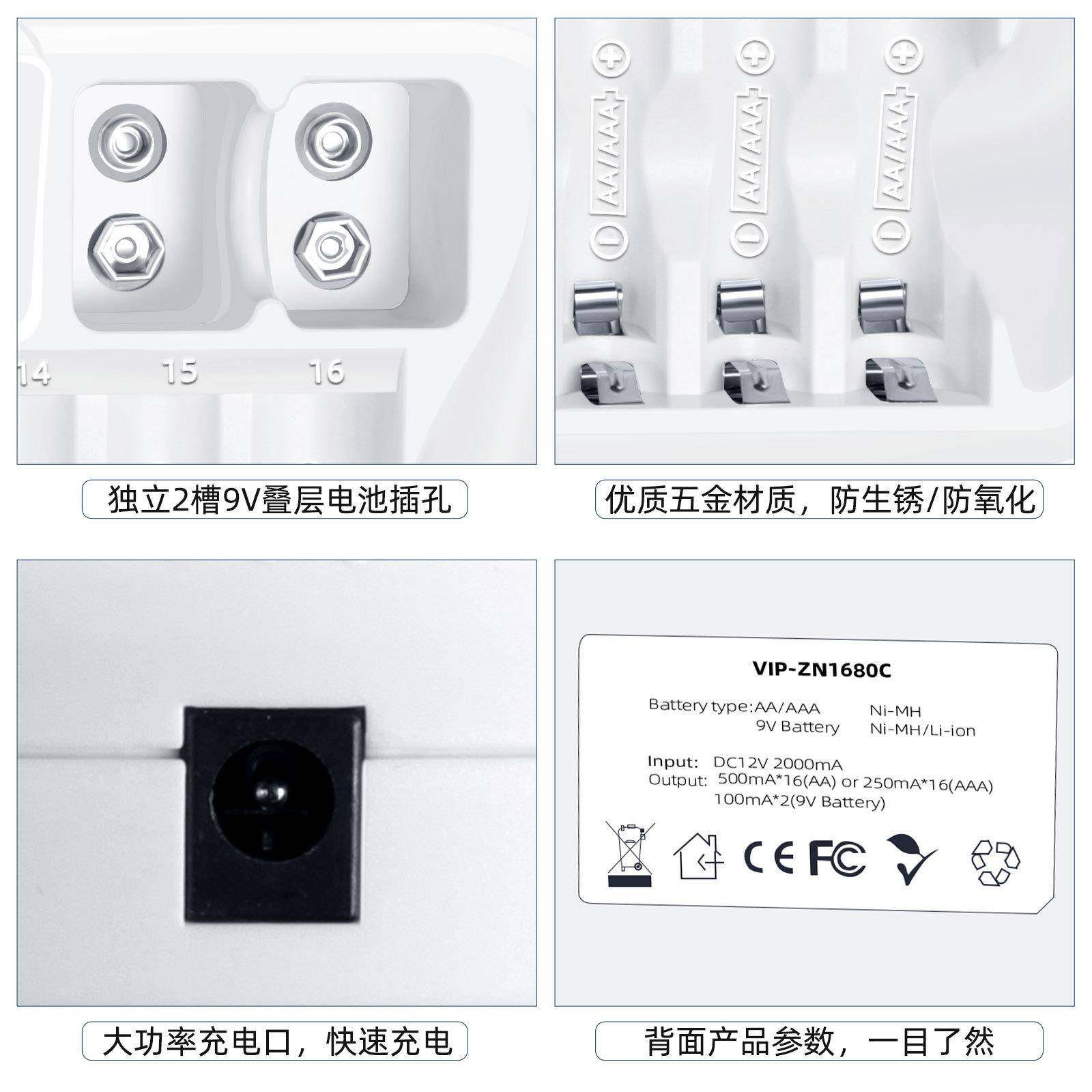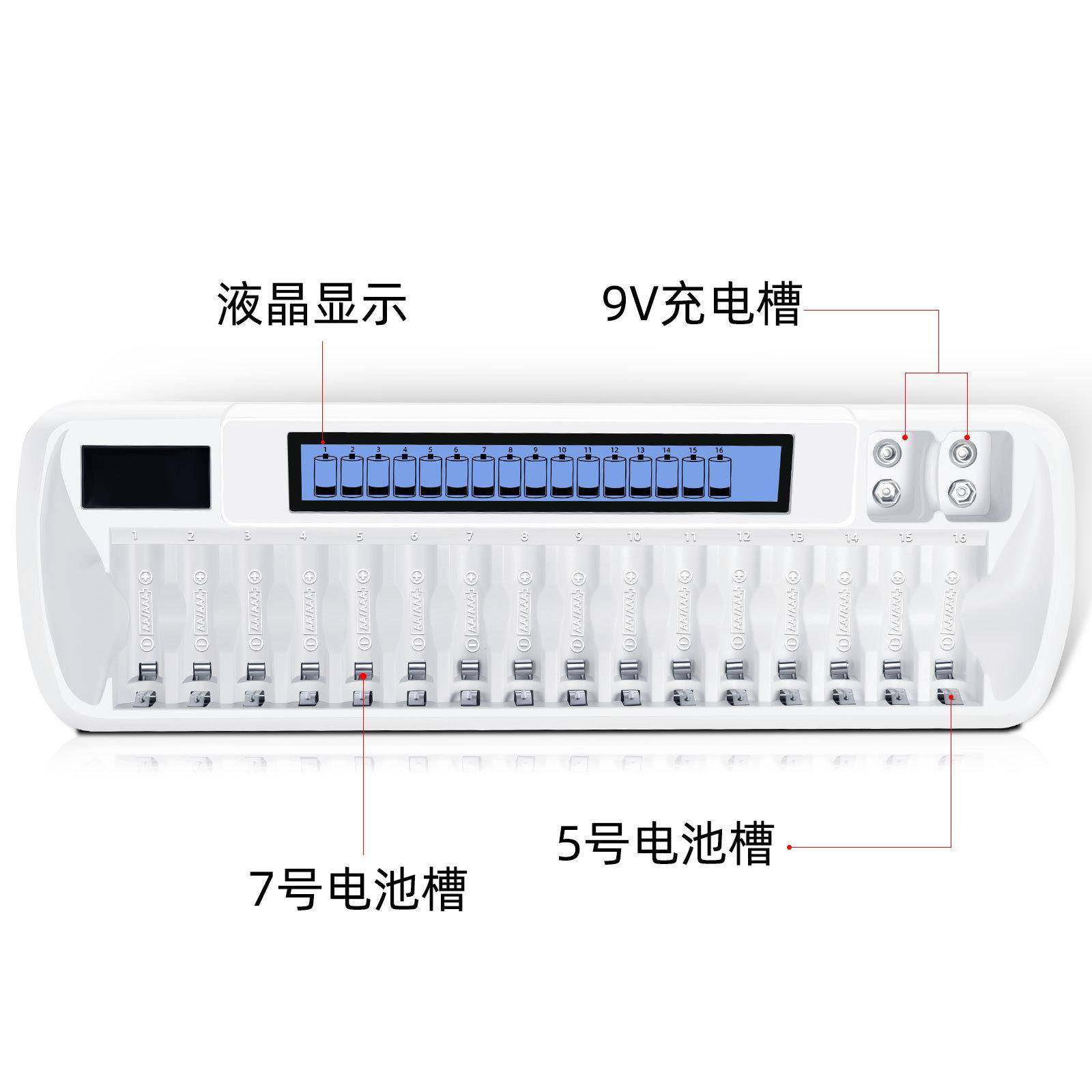 现货16槽液晶智能充电器5号AA7号AAA适用KTV充电器可充9V电池