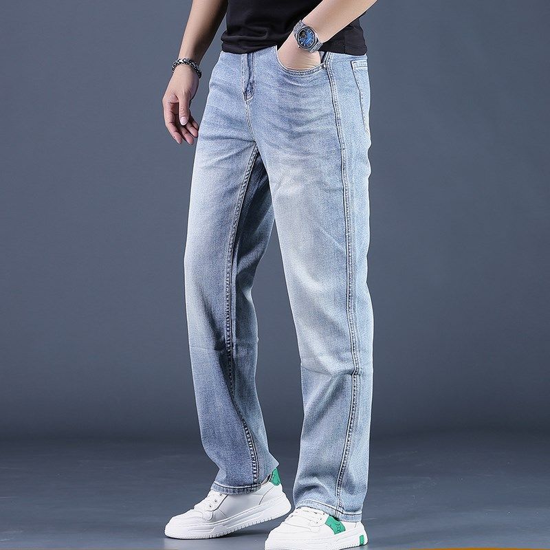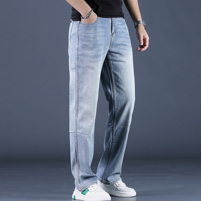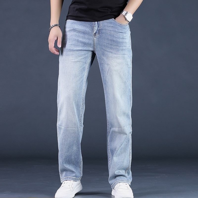 宽松直筒阔腿裤 男士 牛仔裤 高端2024夏季 九分裤 蓝色时尚 潮男裤 新款