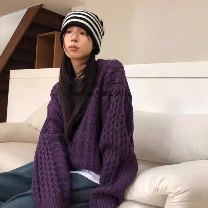 ROUIIEFAO兔毛醒狮帽子女秋冬可爱保暖毛绒渔夫帽手工针织毛线帽