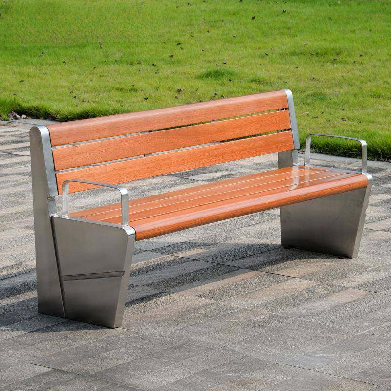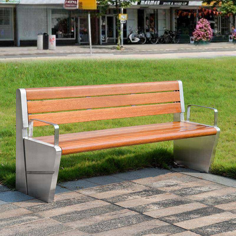 户外创意不锈钢公园椅海棠木长椅景区小区成品座椅商场广场扶手椅
