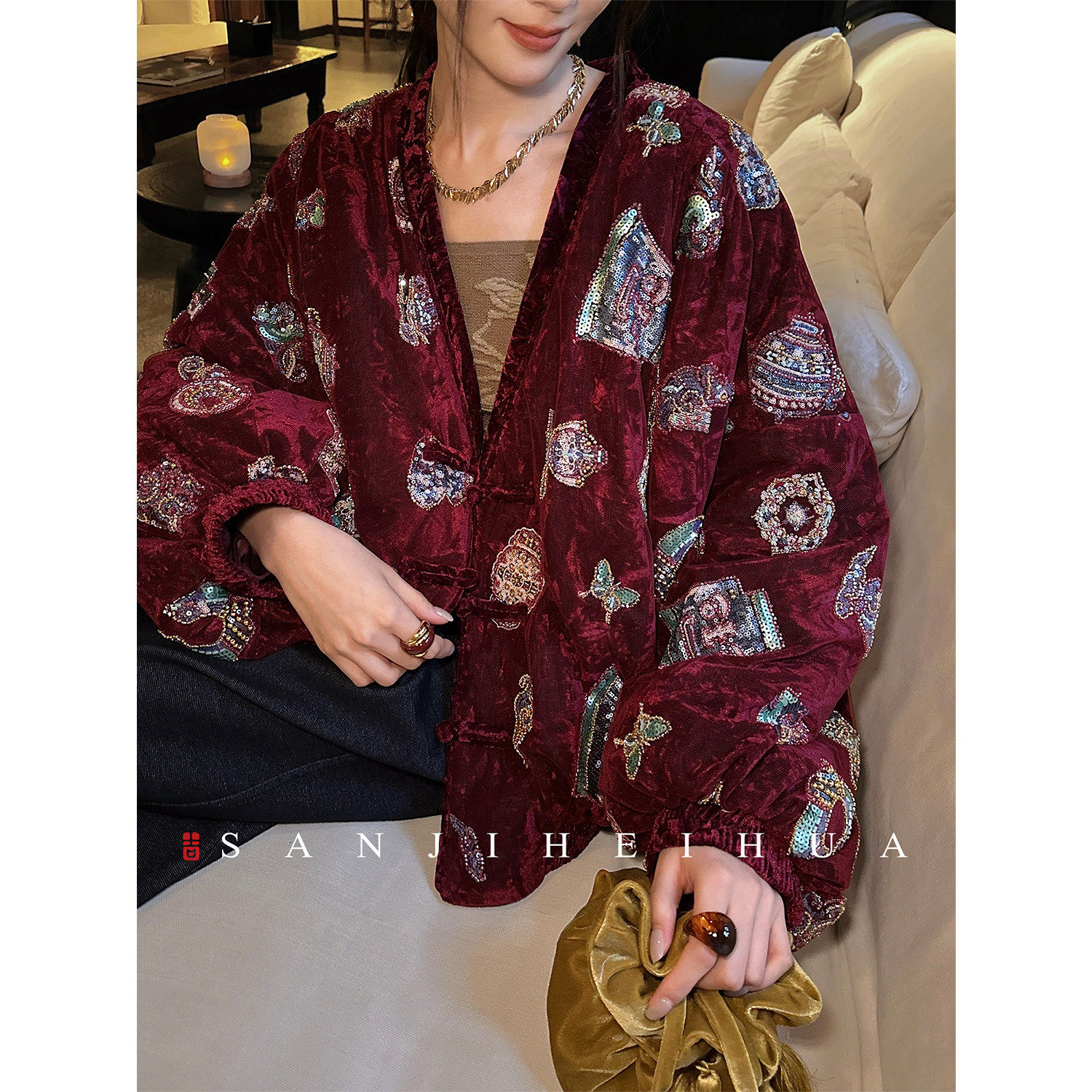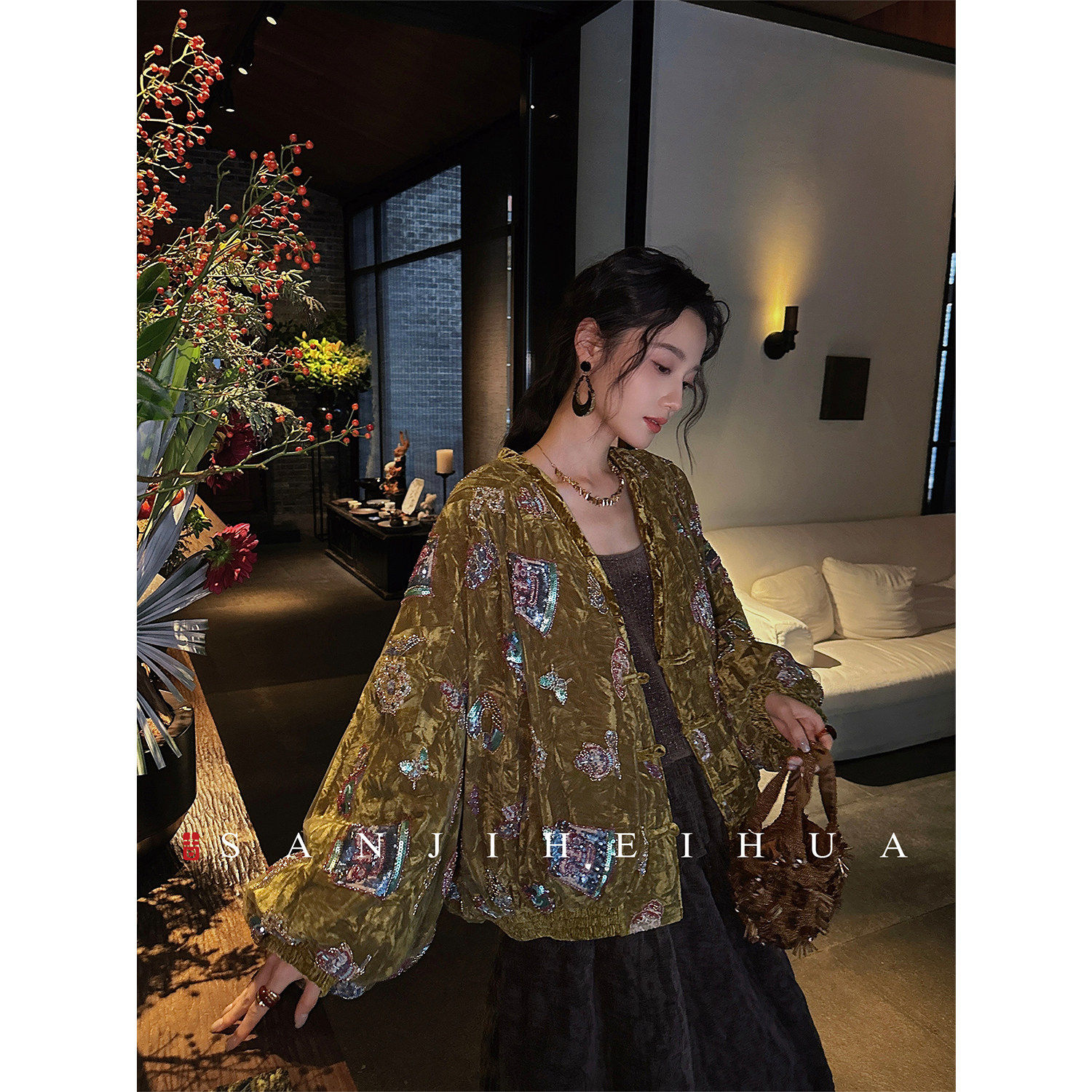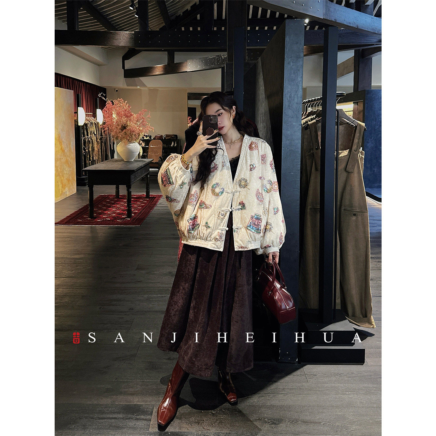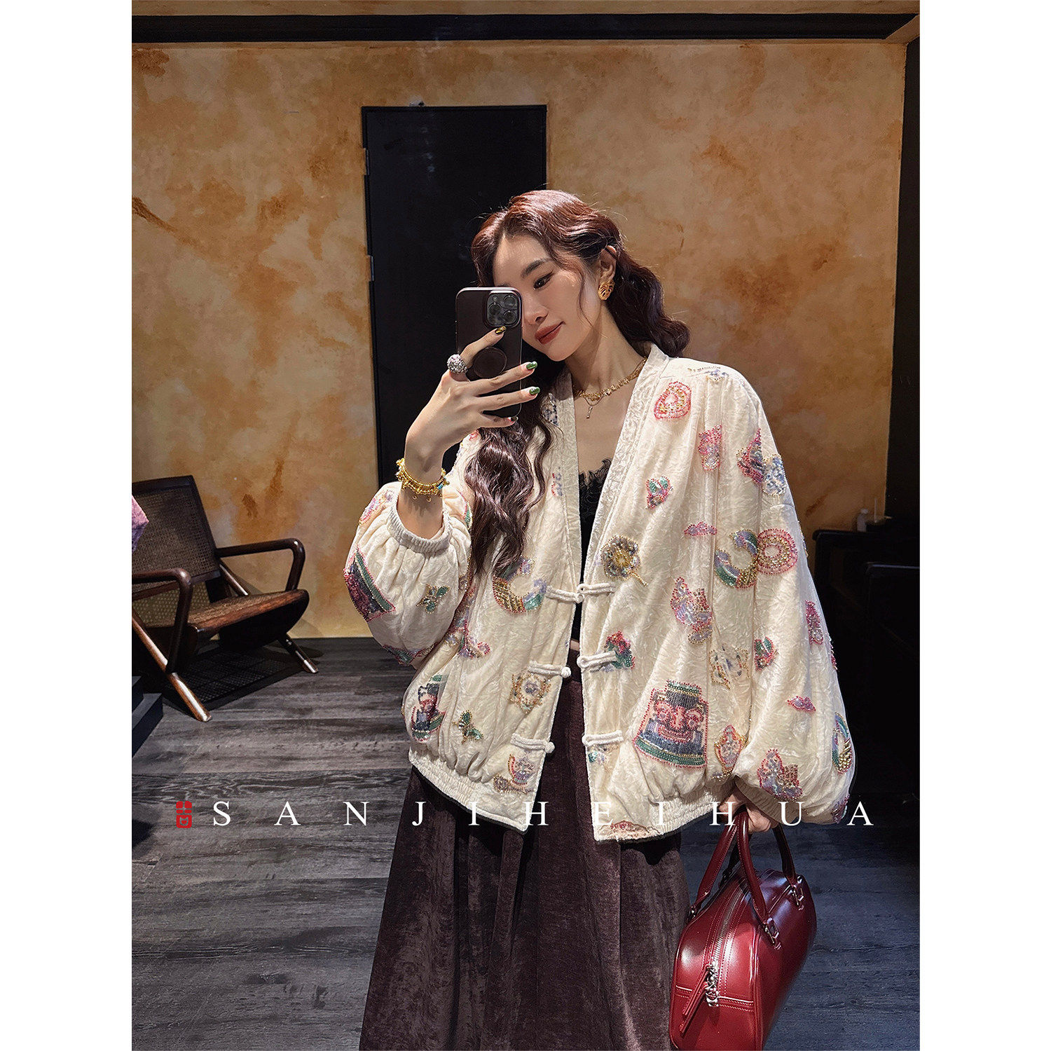 刺绣丝绒羽绒服女国风冬装 福禄颂 外套90白鸭绒 哼哈冰冰