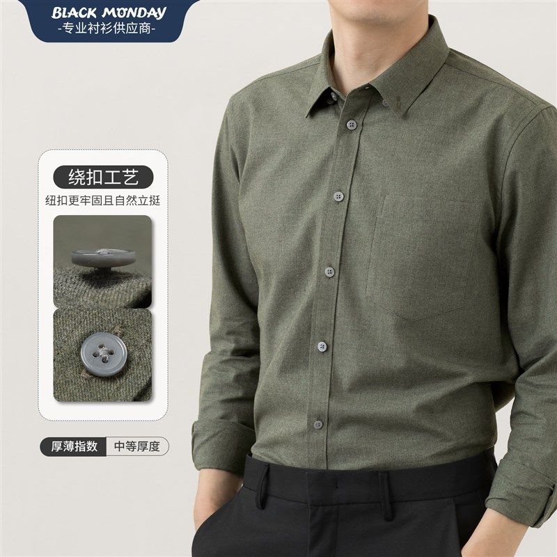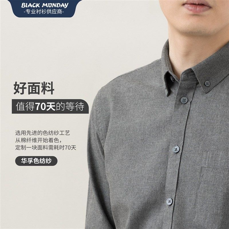 纯棉磨毛衬衣灰商务休闲中青年学生上衣寸衫 长袖 男士 2025秋冬衬衫