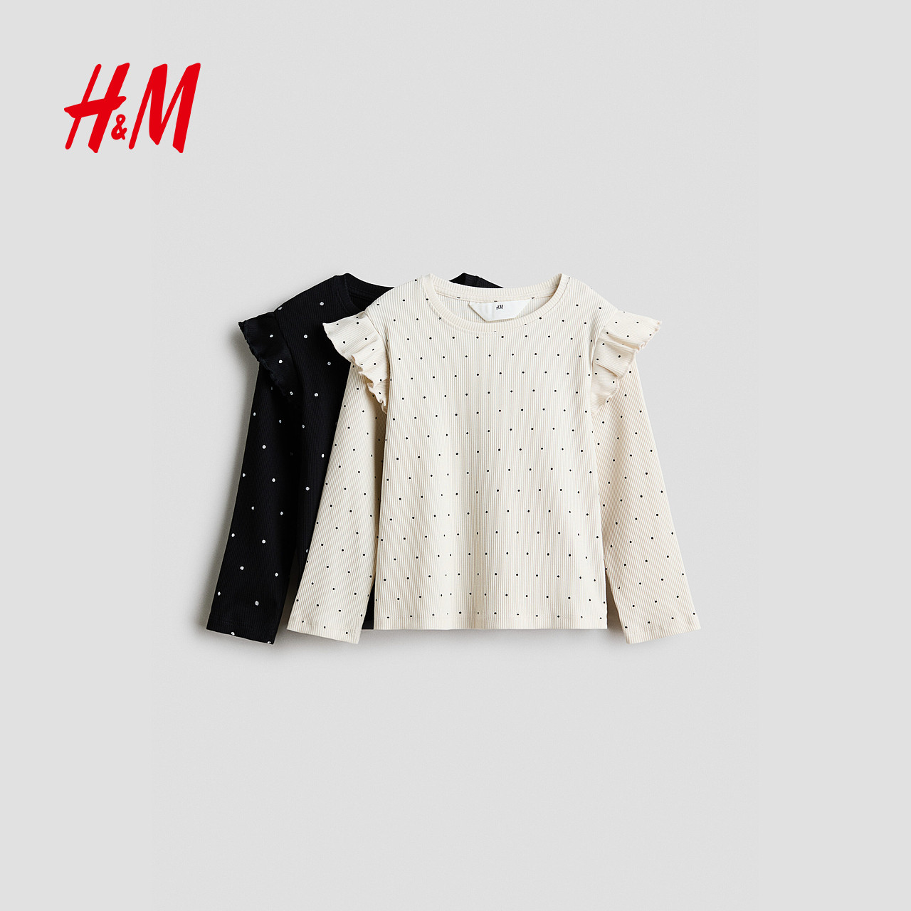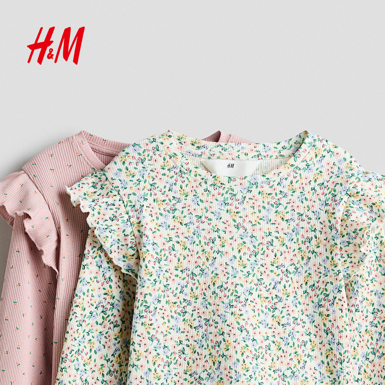 长袖 HM童装 森系田园风2件装 新款 上衣1320882 儿童女童T恤2026春季