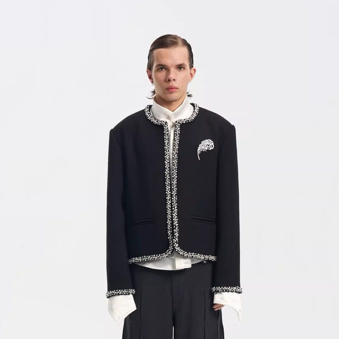 帅气立领男士 百搭修身 夹克潮流外套外衣 休闲刺绣时尚 2025新款