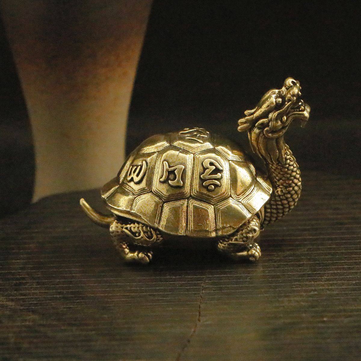 中式 饰品 黄铜创意龙龟香炉摆件玄武禅意居家办公桌面香座铜工艺装