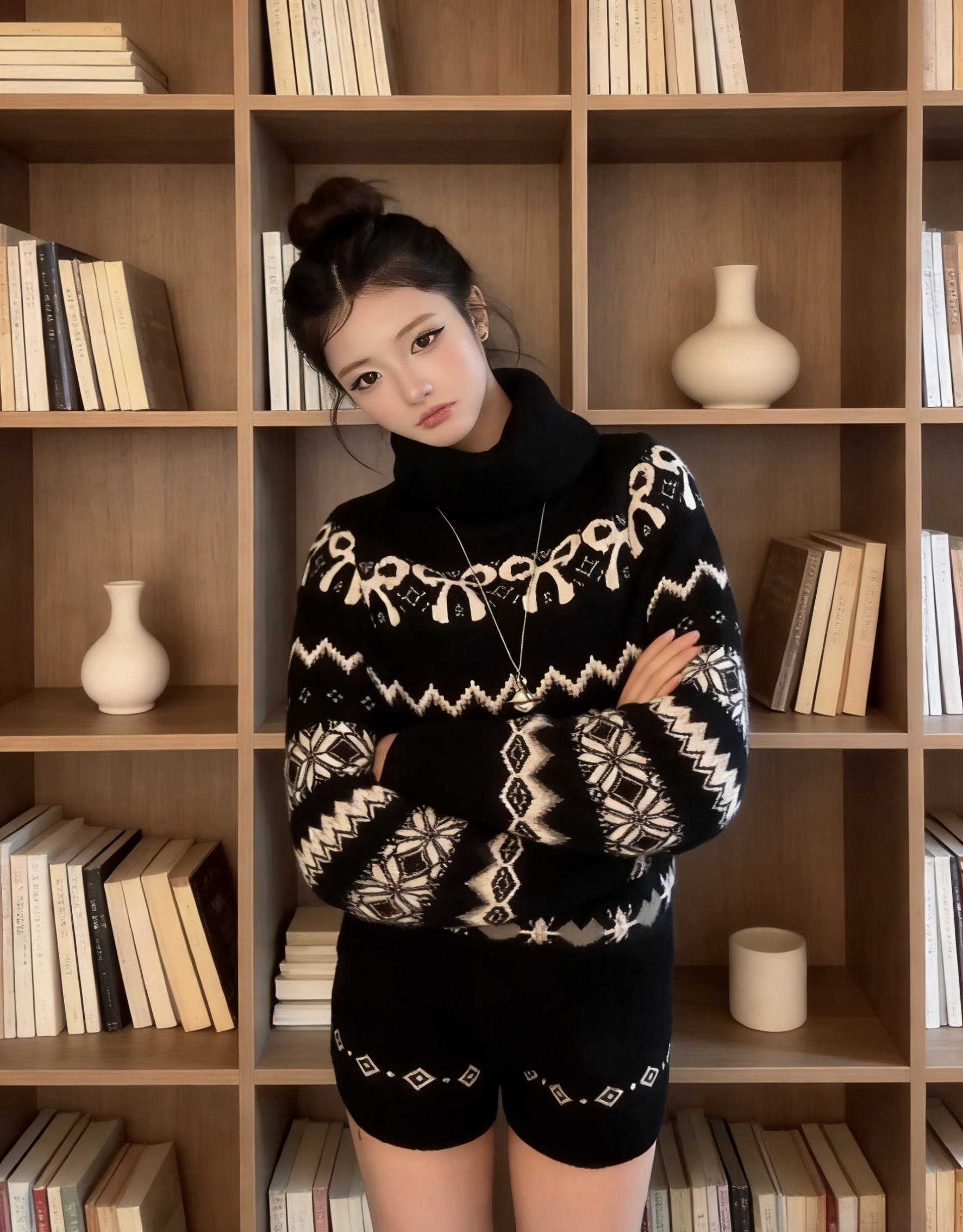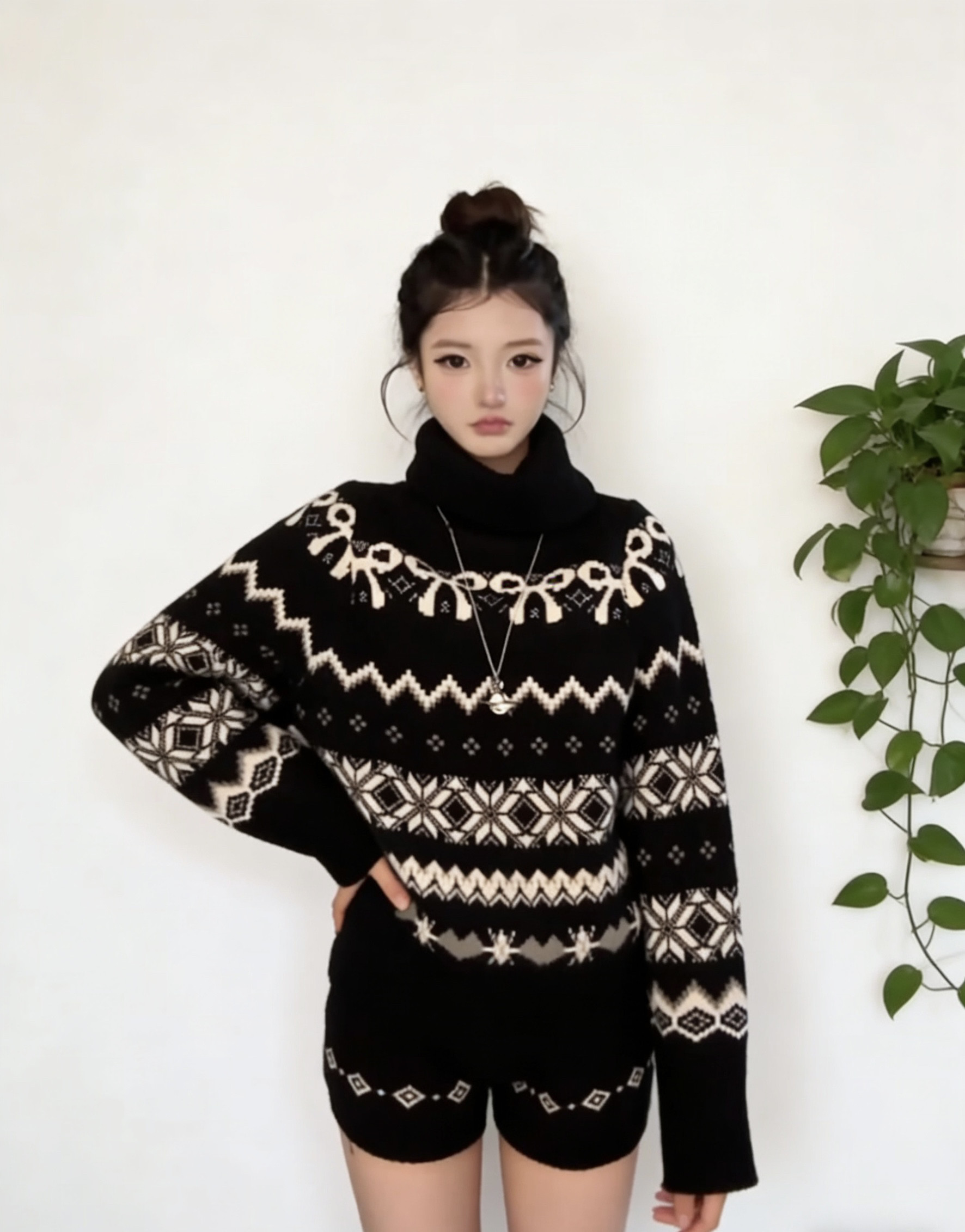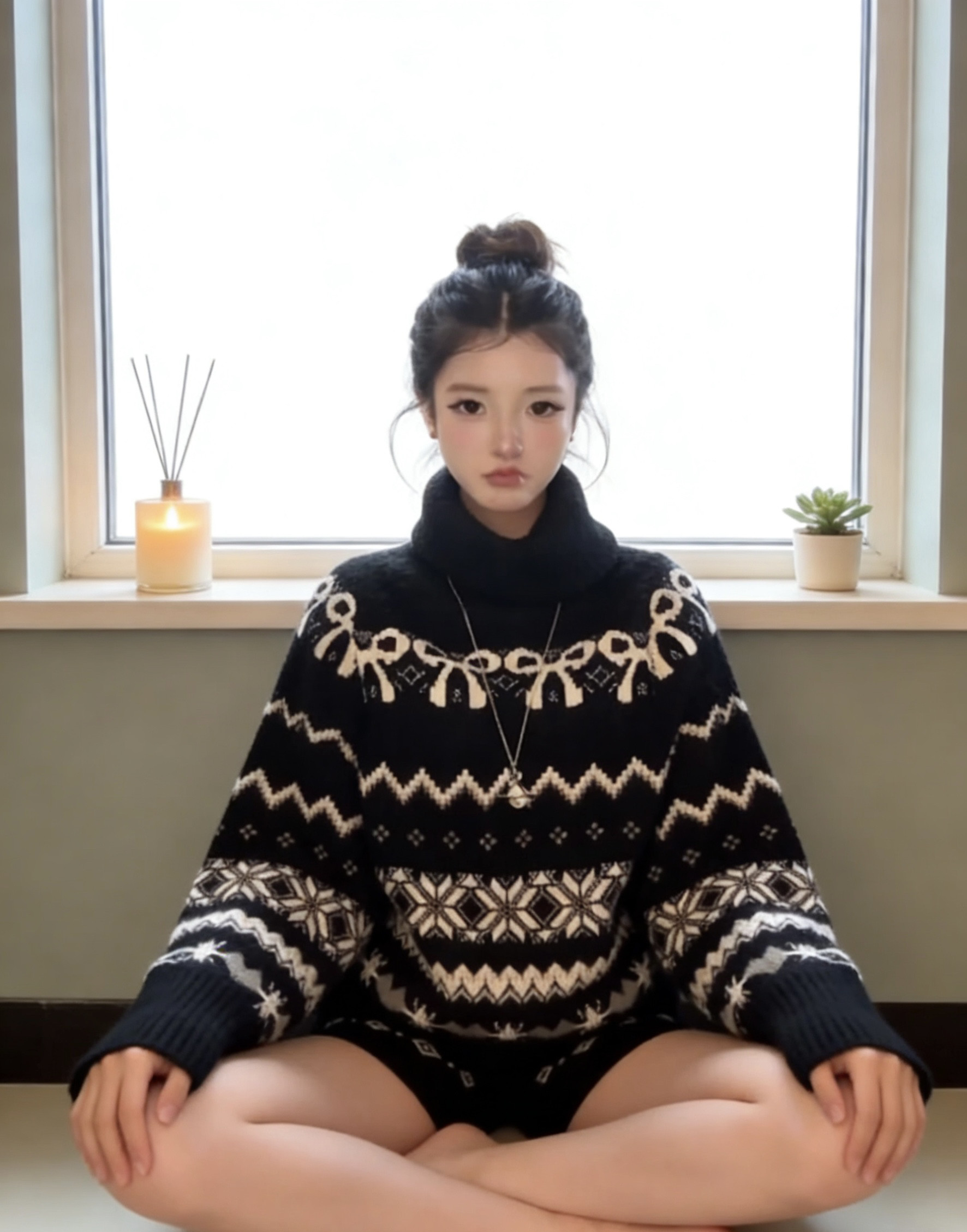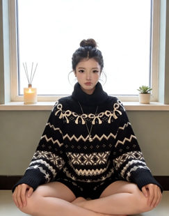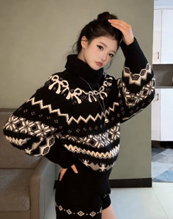 流行风格 宽松秋冬季 上衣 复古慵懒风高级感洋气独特针织衫 2025新款
