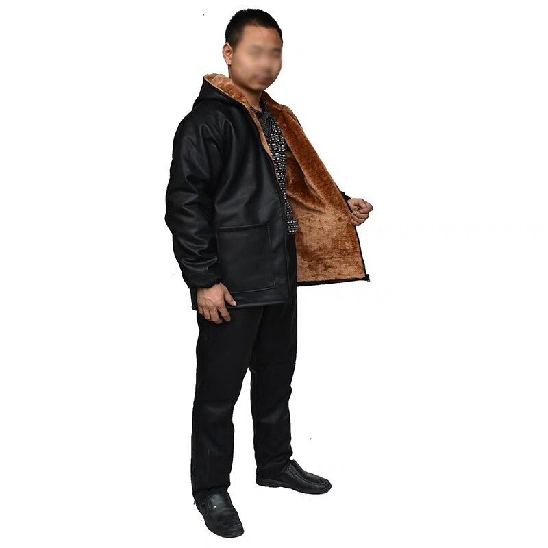 加绒加厚冷库皮衣工作服套装 养殖水产劳保皮服 男防风防水防油皮裤