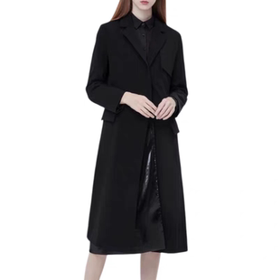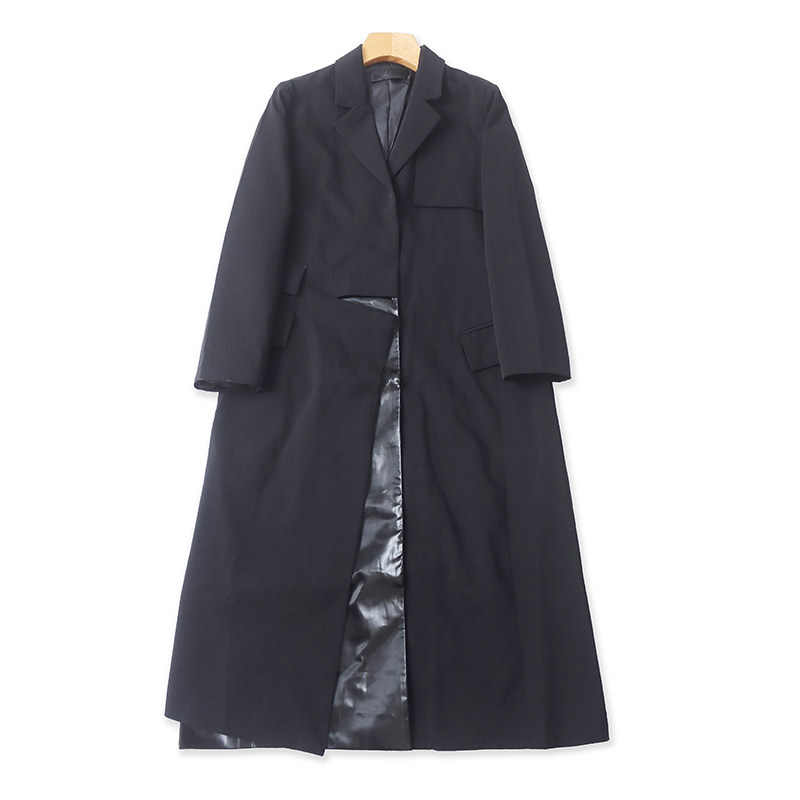 领亮布拼接长款 大衣女装 风衣 时尚 气质外套13082 春秋新款 外贸西装