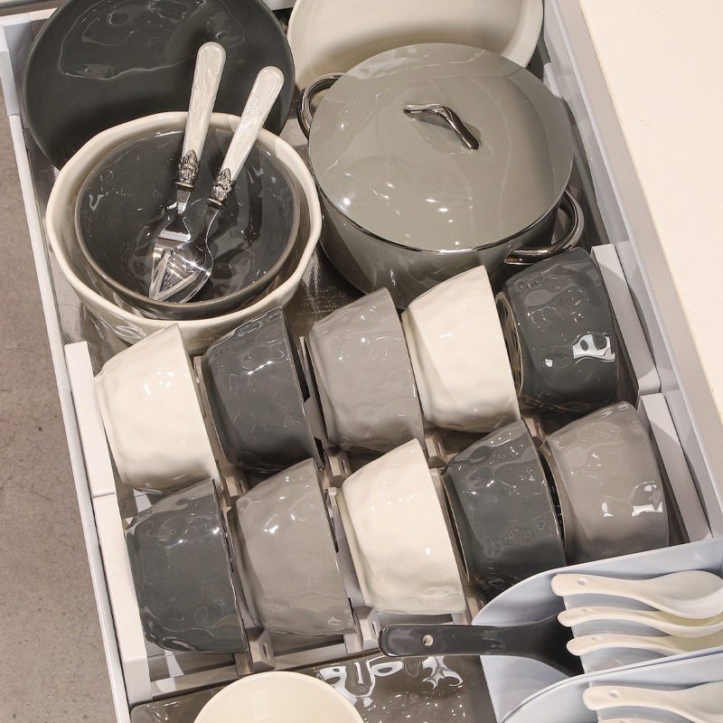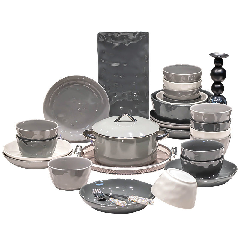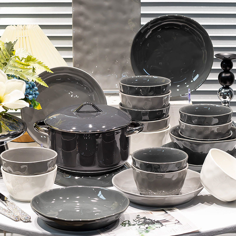 黑白灰极简碗碟餐具套装 家用陶瓷碗盘饭碗组合厨具全套盘E18