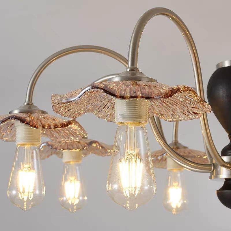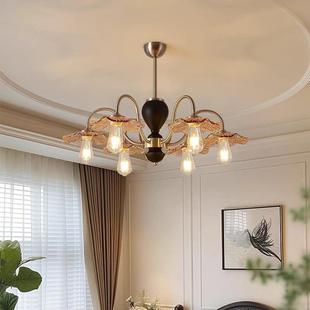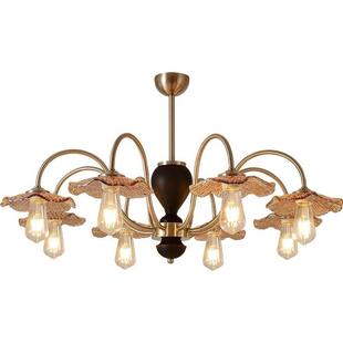 民宿花朵玻璃灯 复古美式 法式 中古客厅吊灯创意实木餐厅卧室灯日式