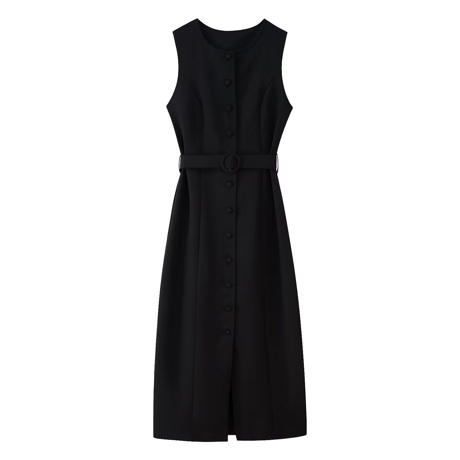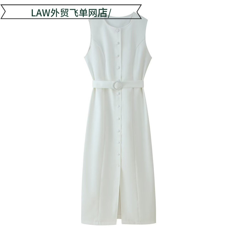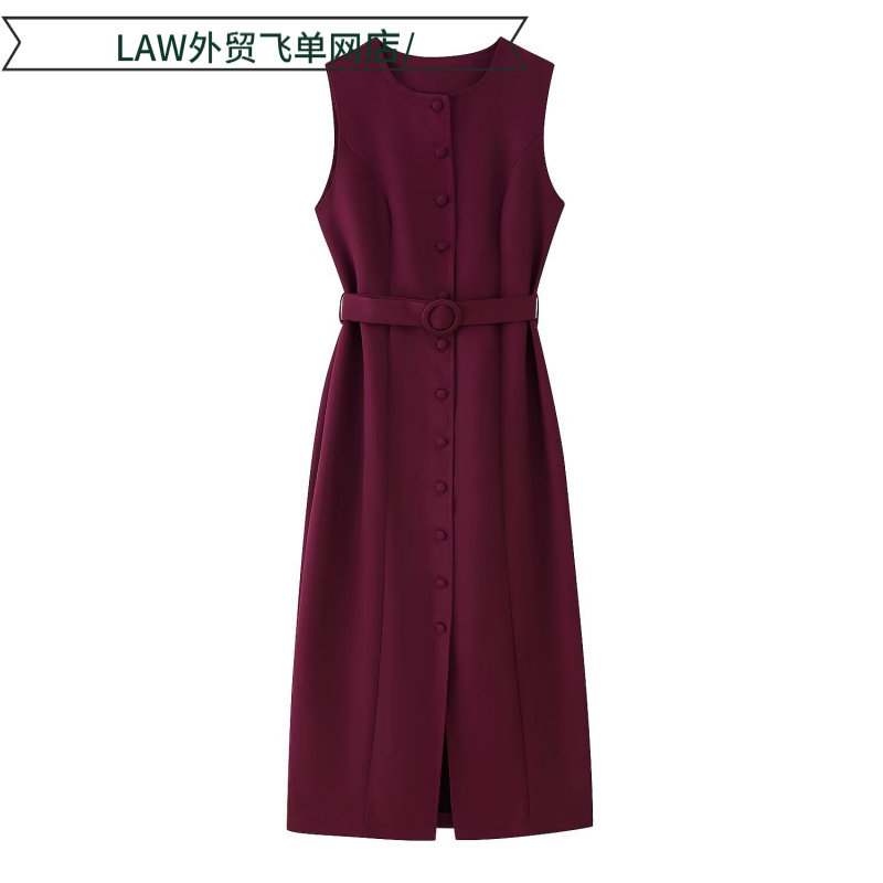 neck party Sexy 优雅圆领无袖 deep dress时尚 配腰带单排 satin