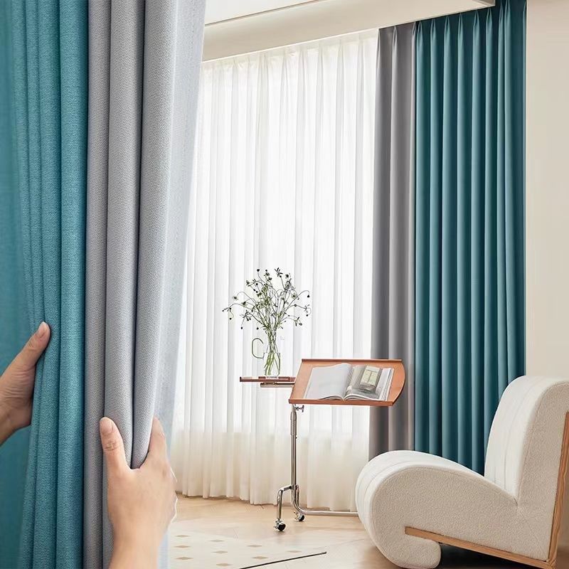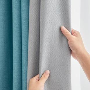 新款 窗帘全遮光特厚双面生态麻z静音拼色窗帘卧室遮光大气客厅隔