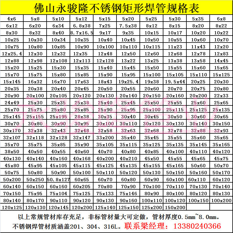 1.0mm 不锈钢管多少钱 304方矩管10 不锈钢扁通规格表