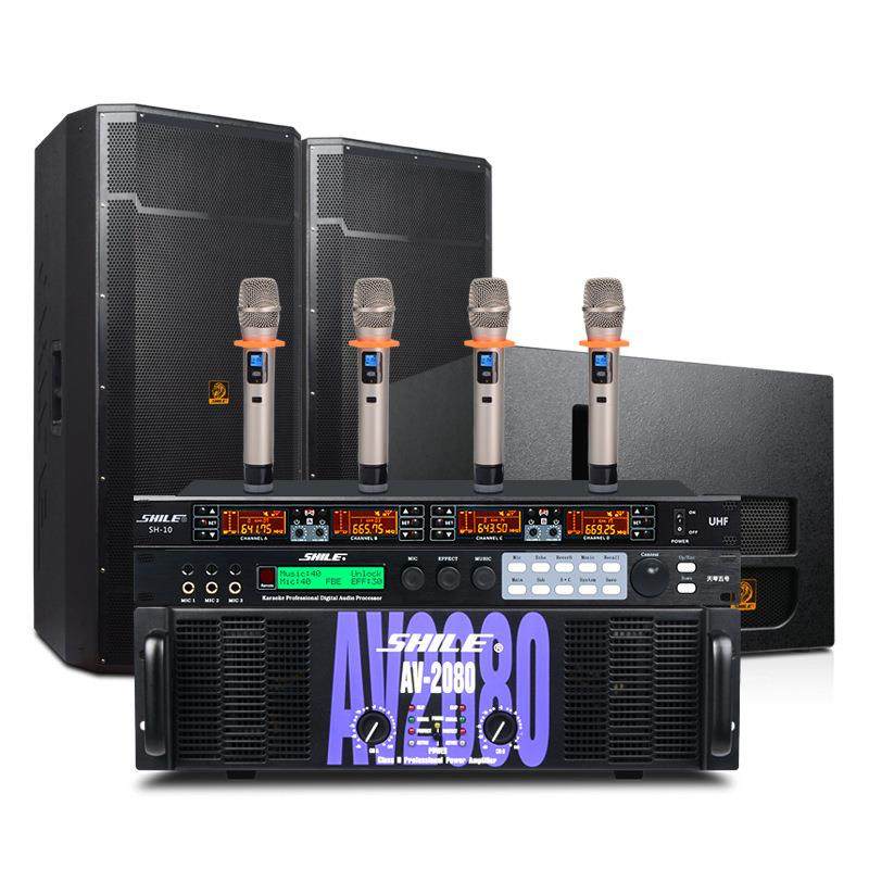 大型会议室音响套装 狮乐BM25舞台演出音箱AV2080功放效果器话筒
