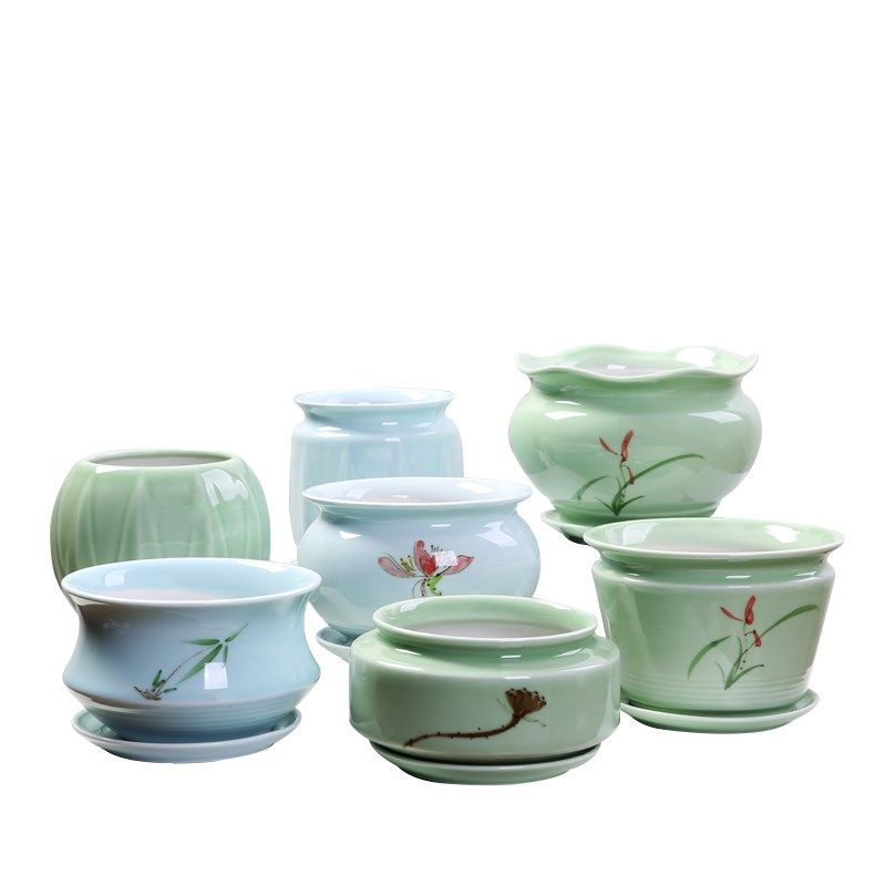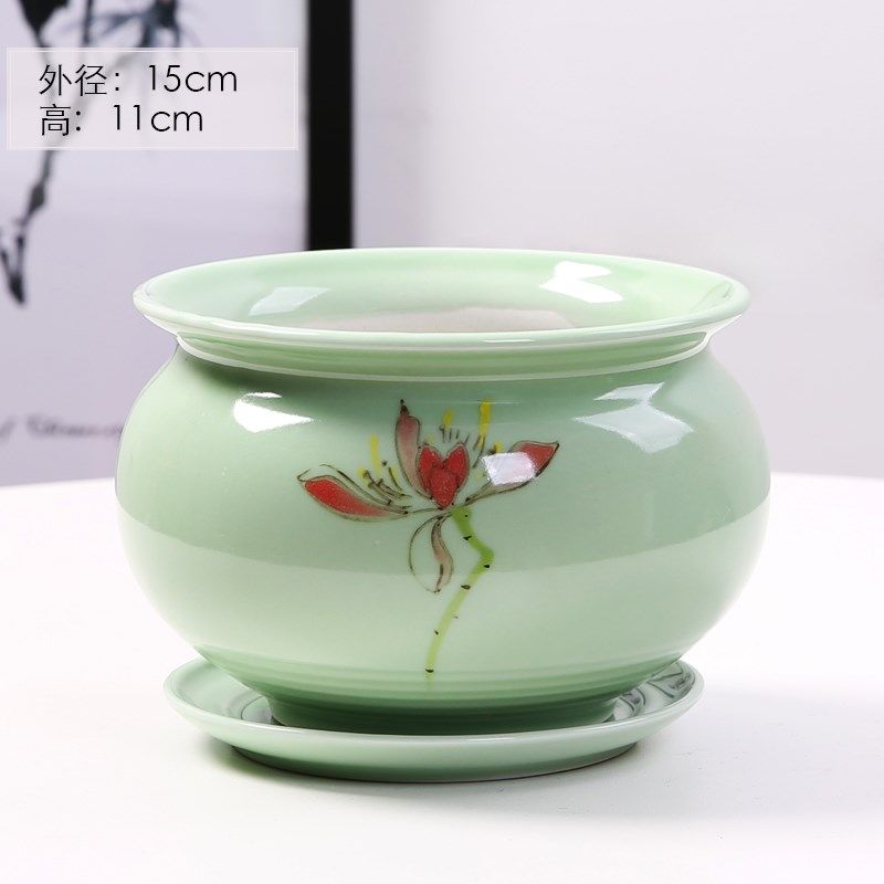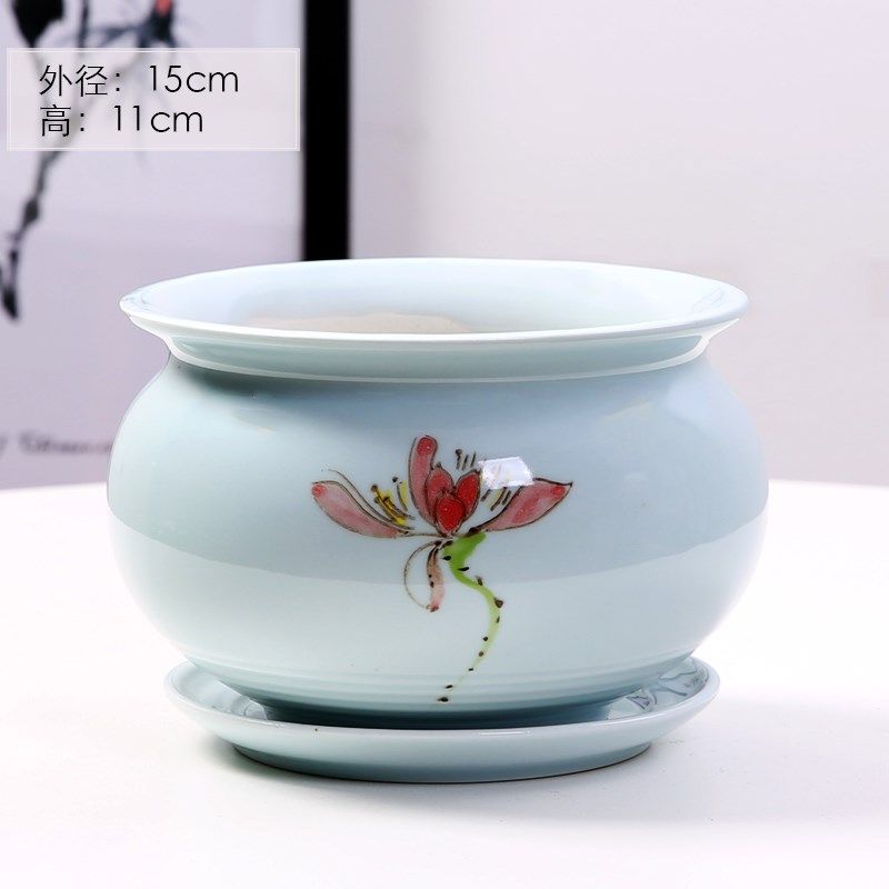 花盆陶瓷铜钱专用花盆睡莲碗莲水培器皿金钱草养花植物容器水仙缸
