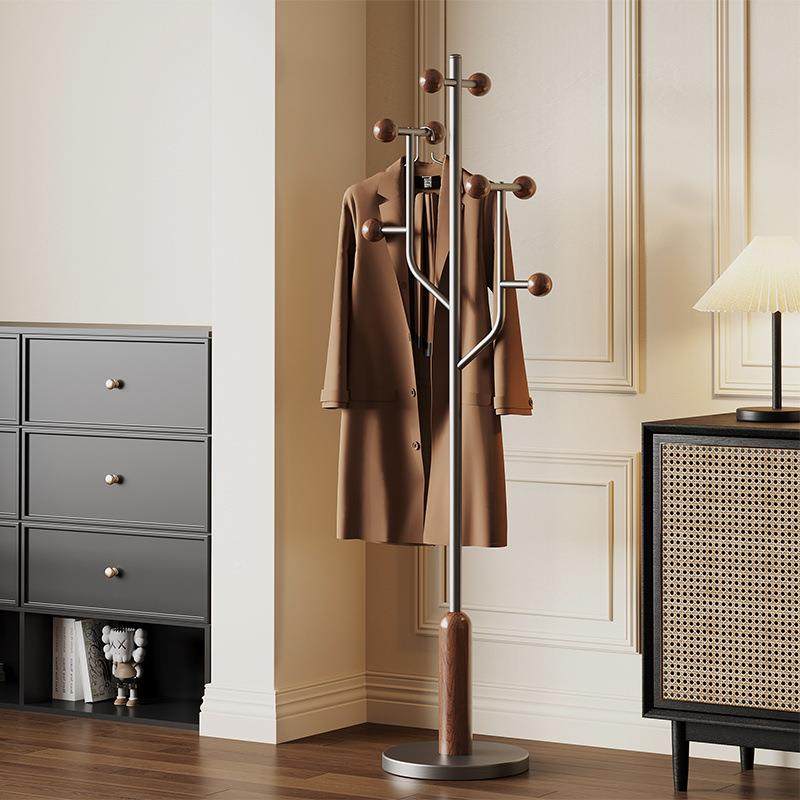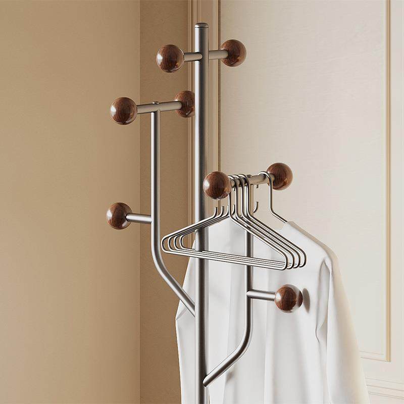 卧室挂衣架落杆式 衣架木置物架家用室内角质超窄复古地BTY极简黑