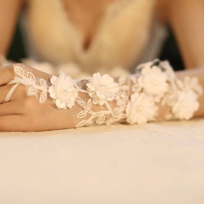 婚纱手套新娘结婚蕾丝长款 白色婚礼手纱立体花珍珠超仙森系复古