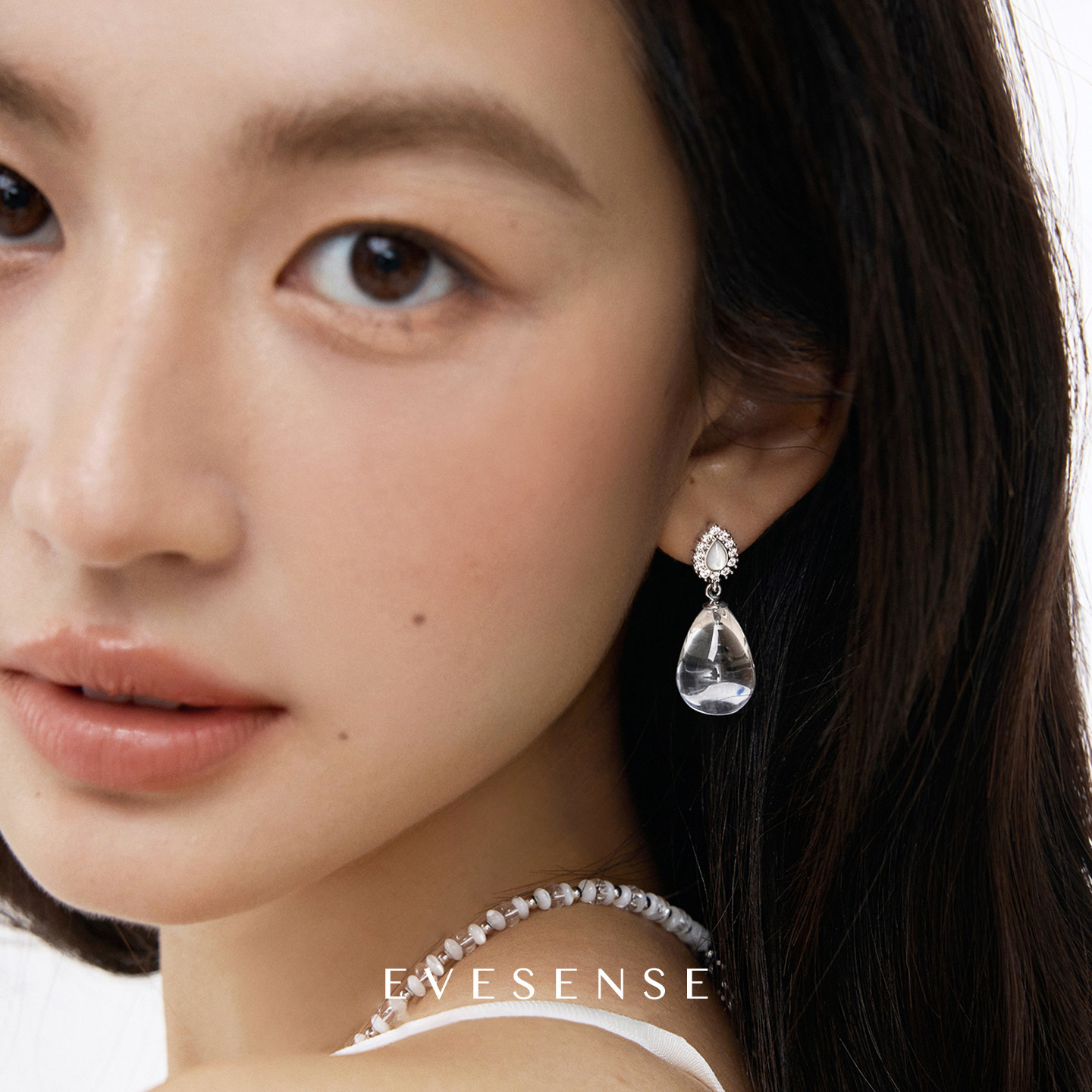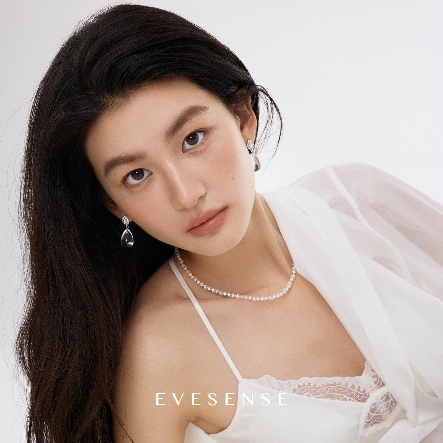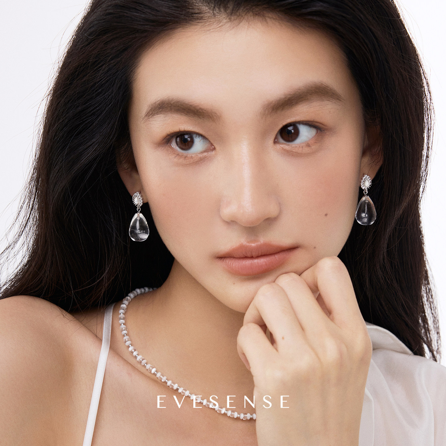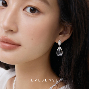 EVESENSE高级感天然白贝镶钻水滴露珠耳坠原创气质透明琉璃耳环女