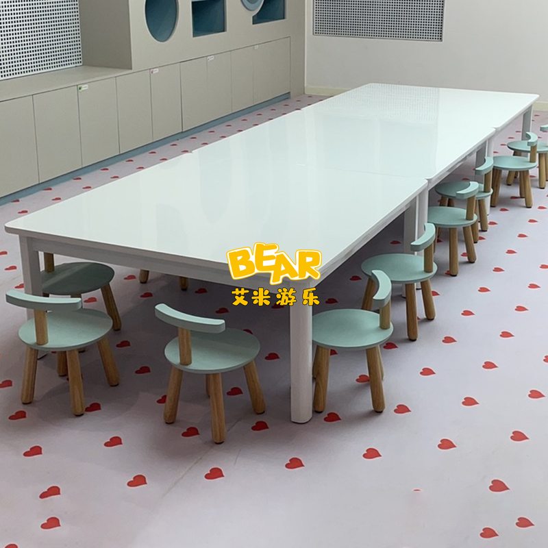 儿童早教培训班白色烤漆桌幼儿园桌椅套装 长方桌学生绘画桌可定做