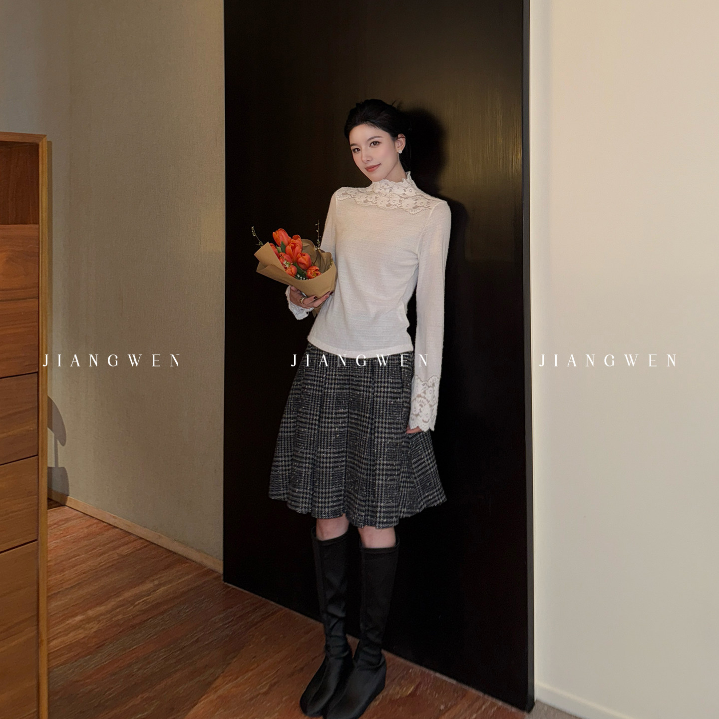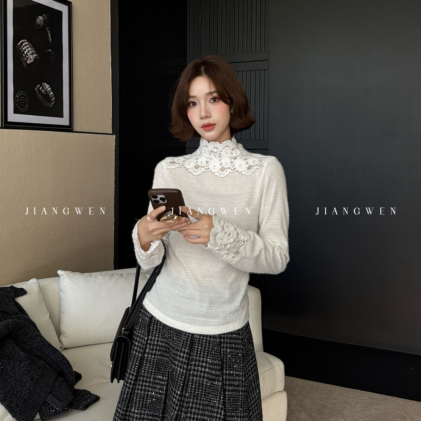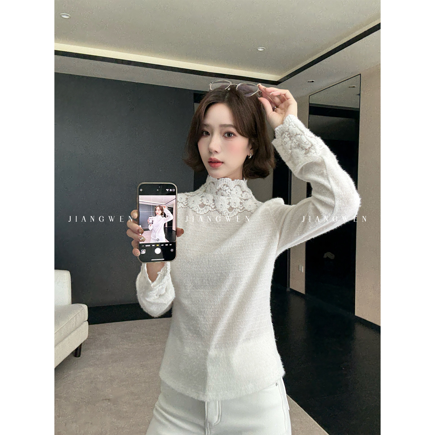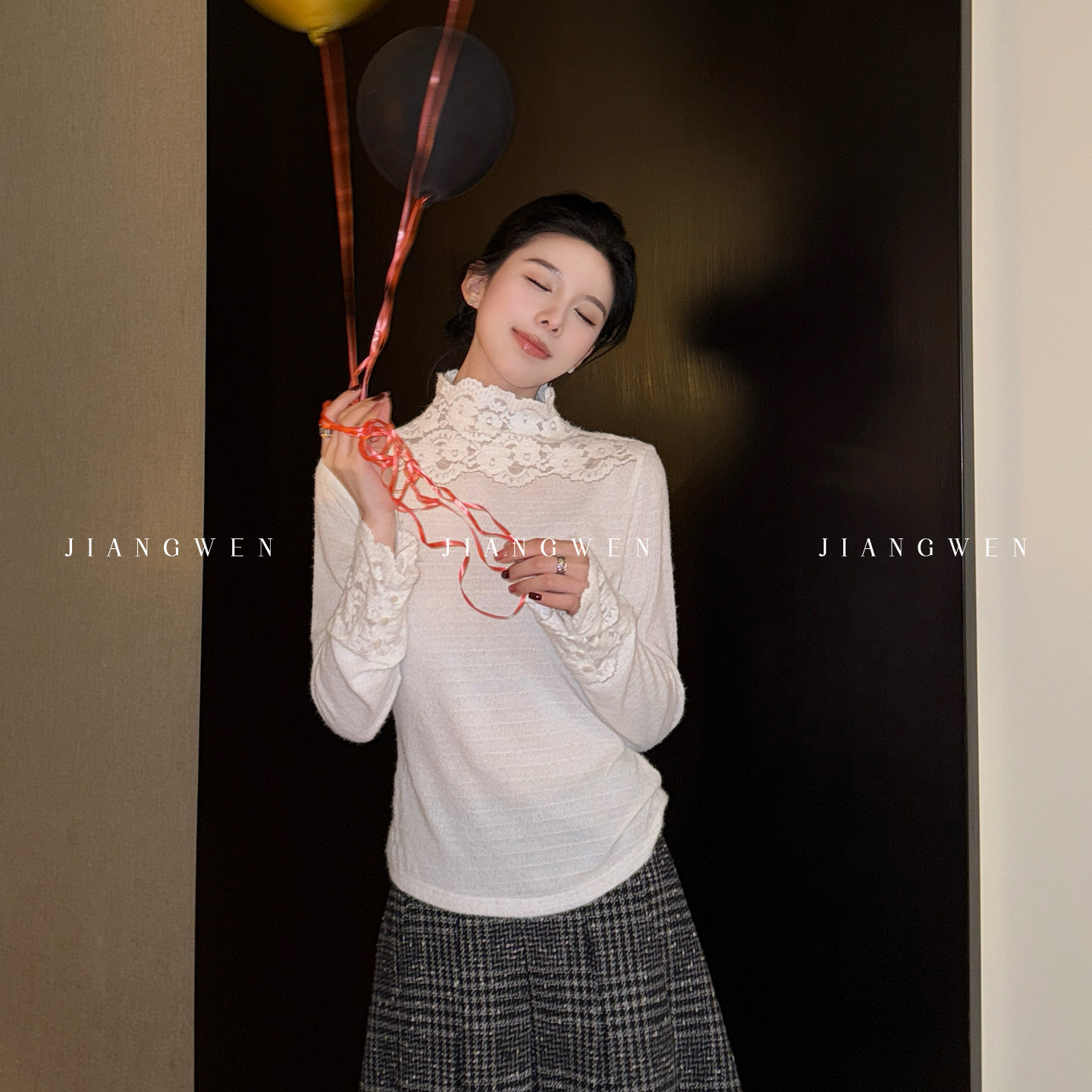半高领蕾丝白色内搭打底衫 韩系显瘦绝美巨好看 上衣女 布蕾 姜雯