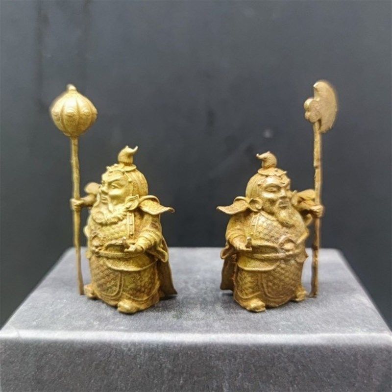 纯黄铜迷你哼哈二将小将军铠甲神话门神人物车载摆件客厅书房摆件