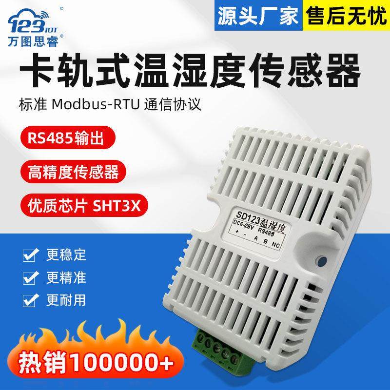 RS485温湿度感测器变送器SHT30工业用高精度卡轨modbus采集器T10