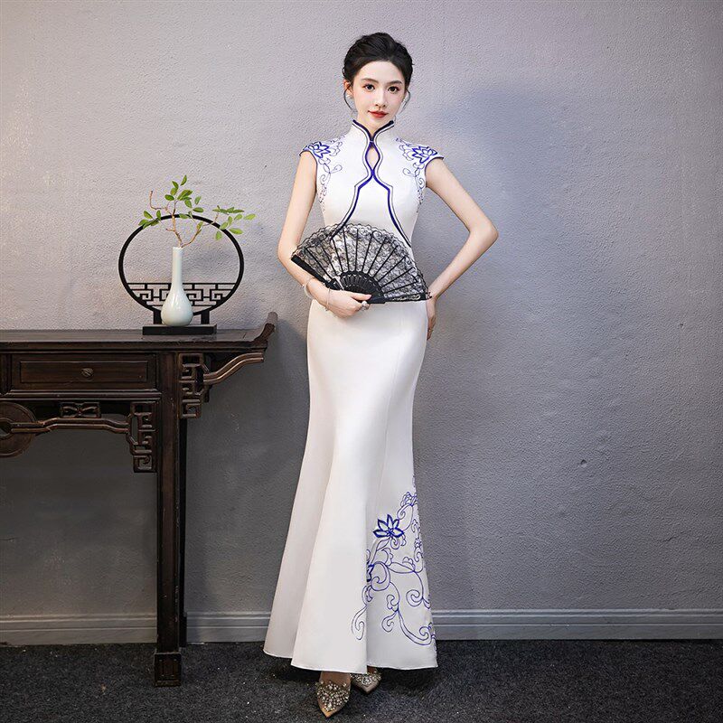 大合唱团演出服女长裙主持人学生合唱红歌指挥服装 旗袍晚礼服 中式