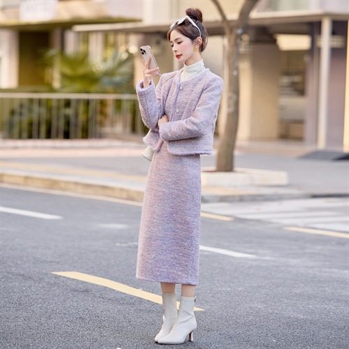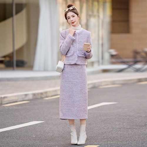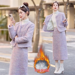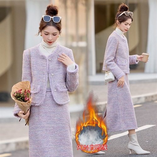 气质拼水貂毛90白鸭绒外套裙子两件套 冬2025新法式 小香风套装 女装