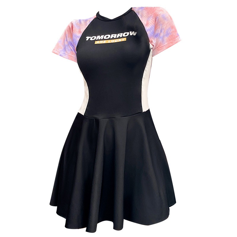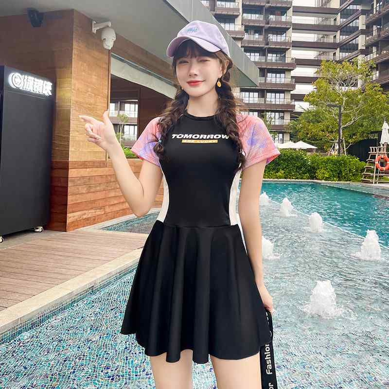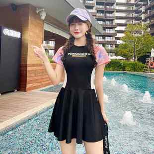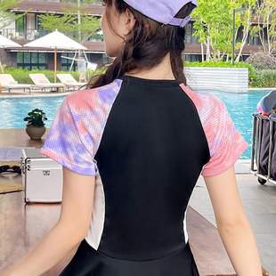 中大童保守游泳运动女孩初中校园学生平角 式 女童泳衣短袖 分体裙裤